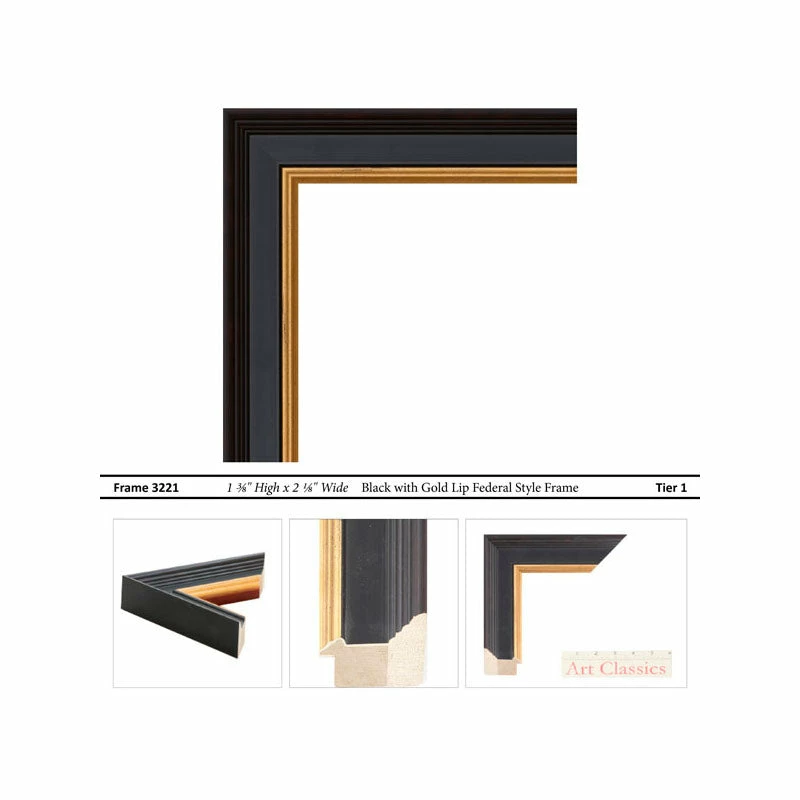 Frame: Black with Gold Lip Federal Style Frame