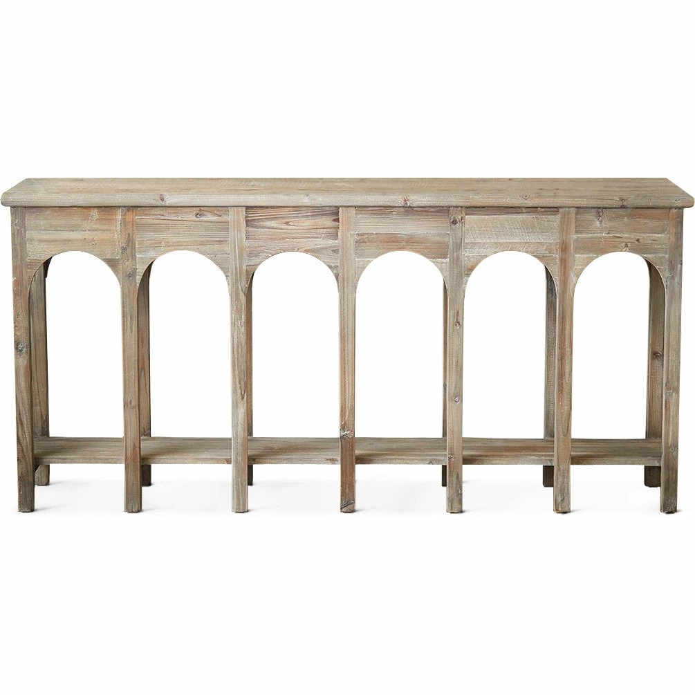 Whether showcased in an entryway or paired with the living room sofa, the Provencia console table is a casual yet fashionable addition to any ensemble. This design brings rustic, Italian farmhouse-inspired style with repeating arches and a weathered pine finish.