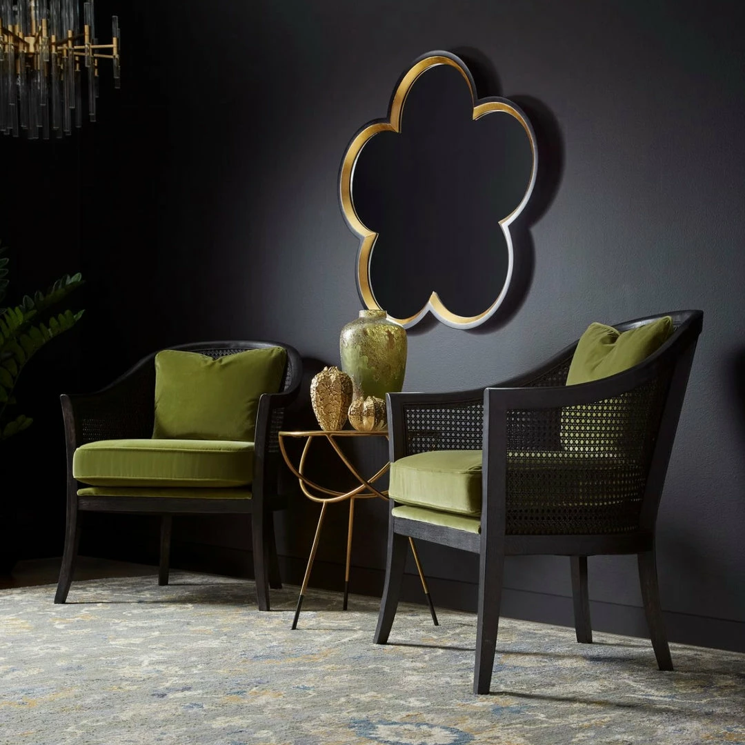 Complete the look of your living room or den whilst adding a new level of comfort. Perfectly at home in rustic or boho aesthetics, the frame of this piece is crafted from solid oak wood in a black finish and upholstered in a solid olive green velvet with down filled pillow back.