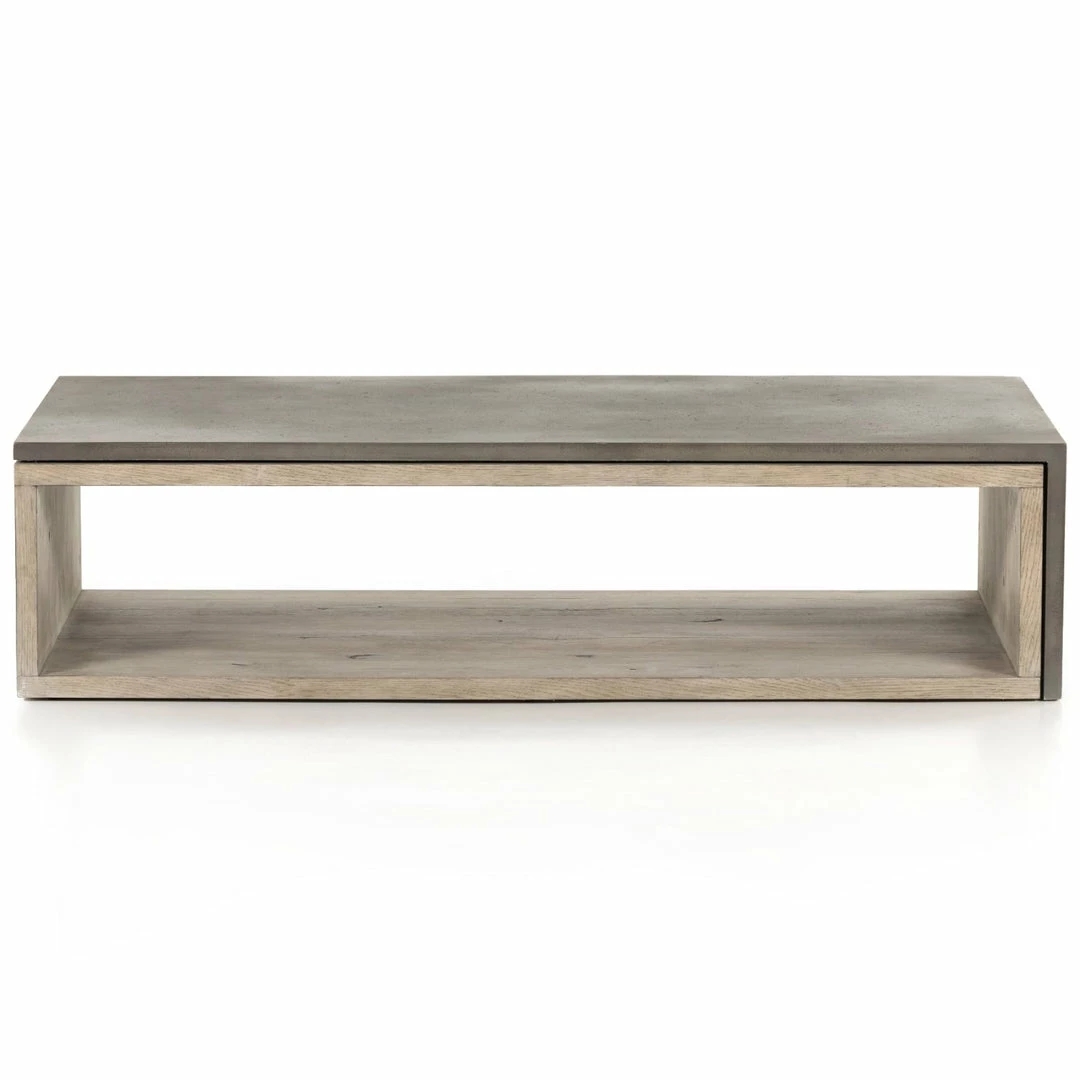 Thick-cut oak veneer forms a clean, structured frame for a fold-over concrete top finished in a deep, dark grey. Whether styled with stacked books or kept clear, this modern-minded coffee table awes from all angles.