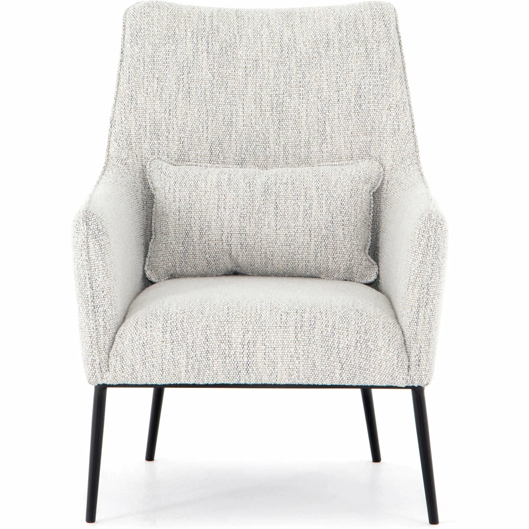A modern take on the traditional wing chair, Cortez is tailored for comfort with chunky, cotton-like upholstery and perimeter piping for a crisp, clean look. Slim, black-finished iron legs keep things looking airy and light.