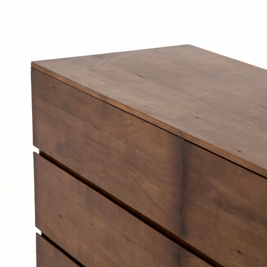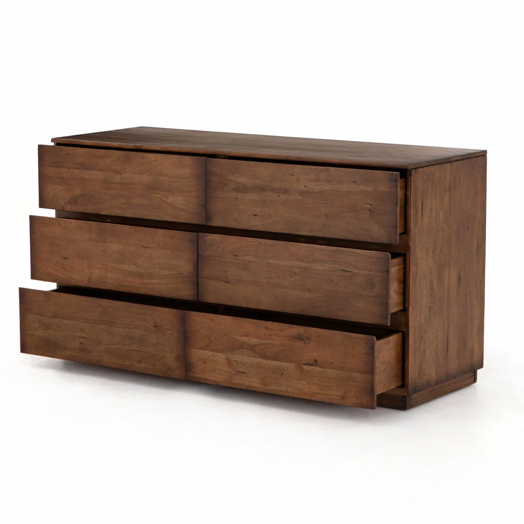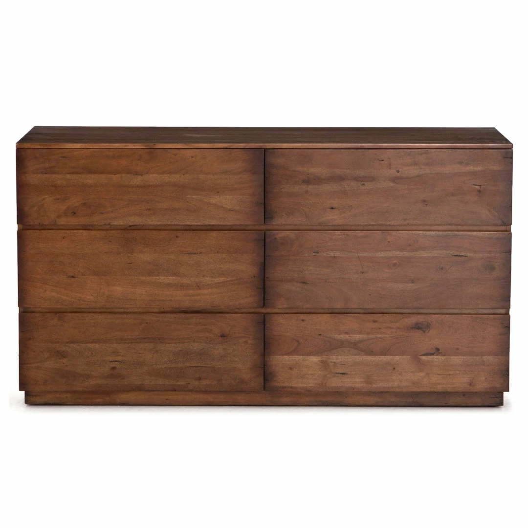 Organic in nature with mid-century undertones. Solid acacia forms a streamlined dresser, with six spacious drawers.