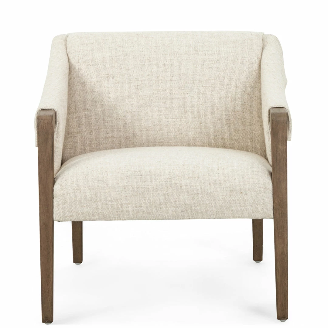 Cream-colored upholstery fastens to parawood framing by way of trend-forward buckles. Angular arms honor mid-century design, adding a throwback feel to a cutting-edge look.