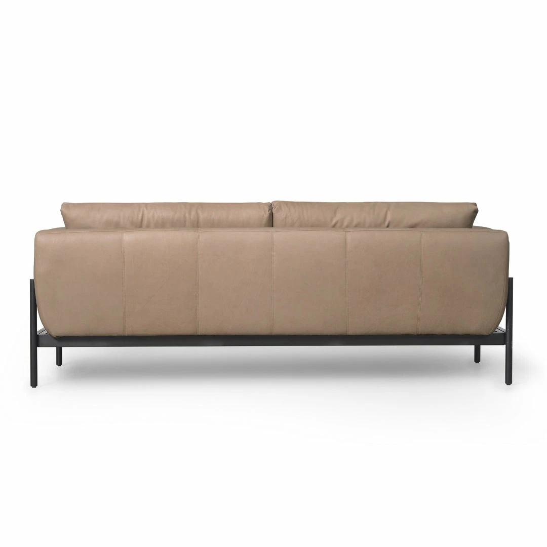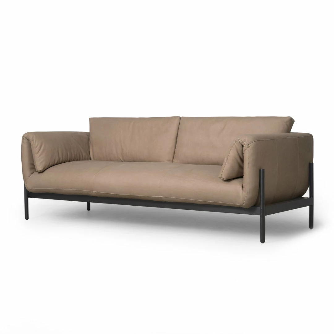 A softer, more modern take on a classic silhouette. Plush cushioning and unique foldover arm details are upholstered in our rich, buttery soft 100% top-grain leather. Matte iron base adds just the right amount of contrast.