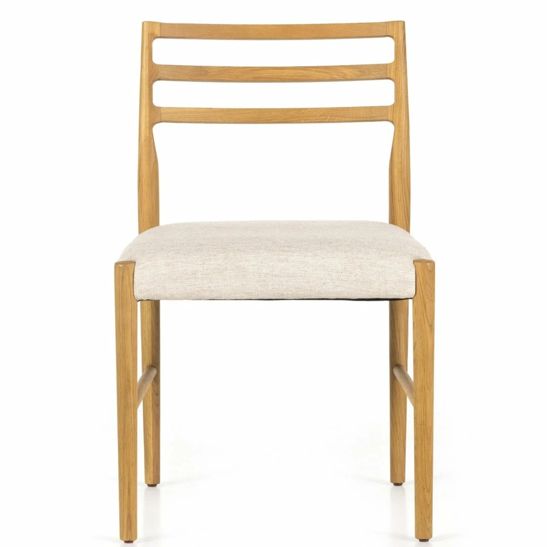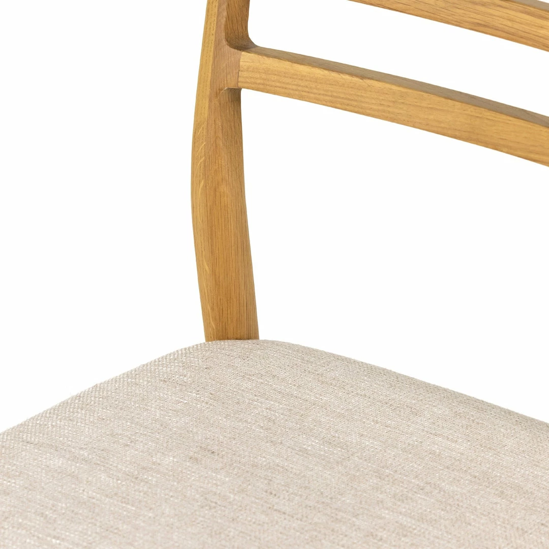 Modern organic materials redefine the classic mid-century Danish-American style ladder back dining chair. The light natural-toned seat blends cotton with linen for a textured feel and comfortable sit, while the buff oak frame adds complimentary contrast.