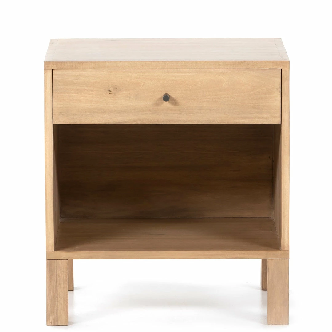 Beautifully simple. Solid dry-washed poplar forms a cubed nightstand with dovetail joinery for a fresh update to Shaker-inspired styling.