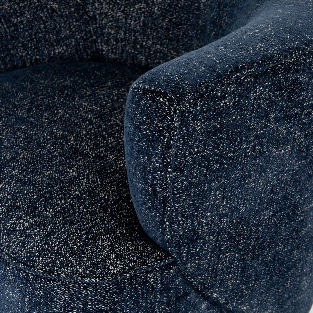 Sultry and sensible. Performance-grade upholstery of textural blue hugs the curves of modern-minded seating, with a hidden swivel for a functional touch.