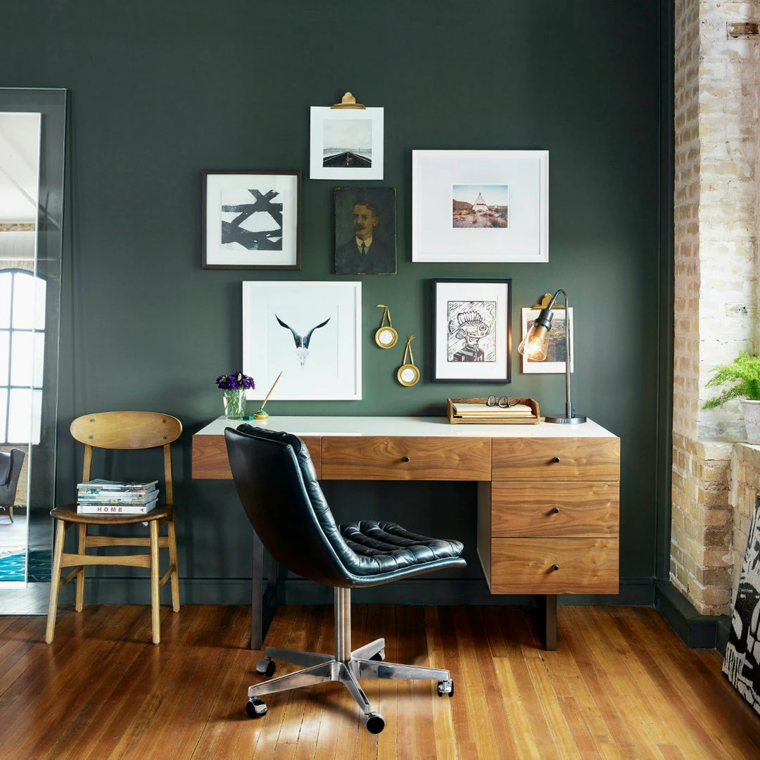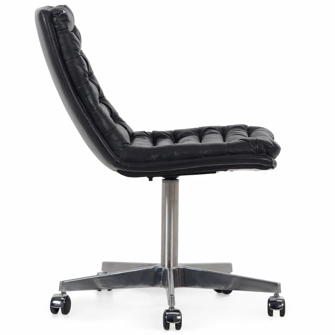 Paired back and fashion-forward, this minimalist desk chair inΒ black top-grain leather offers maximum comfort. Inspired by work spaces of the β50s and β60s. Stainless steel casters make for stylish ease in the workplace.