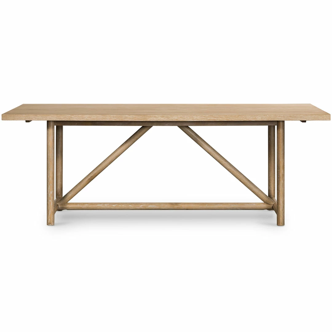 Rustic goes modern. A triangular stretcher brings architectural interest to this simply styled dining table of white-washed oak.