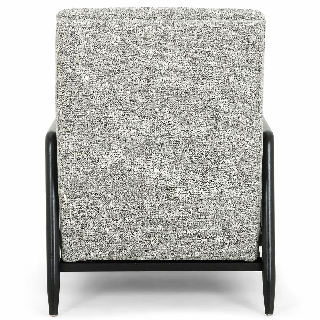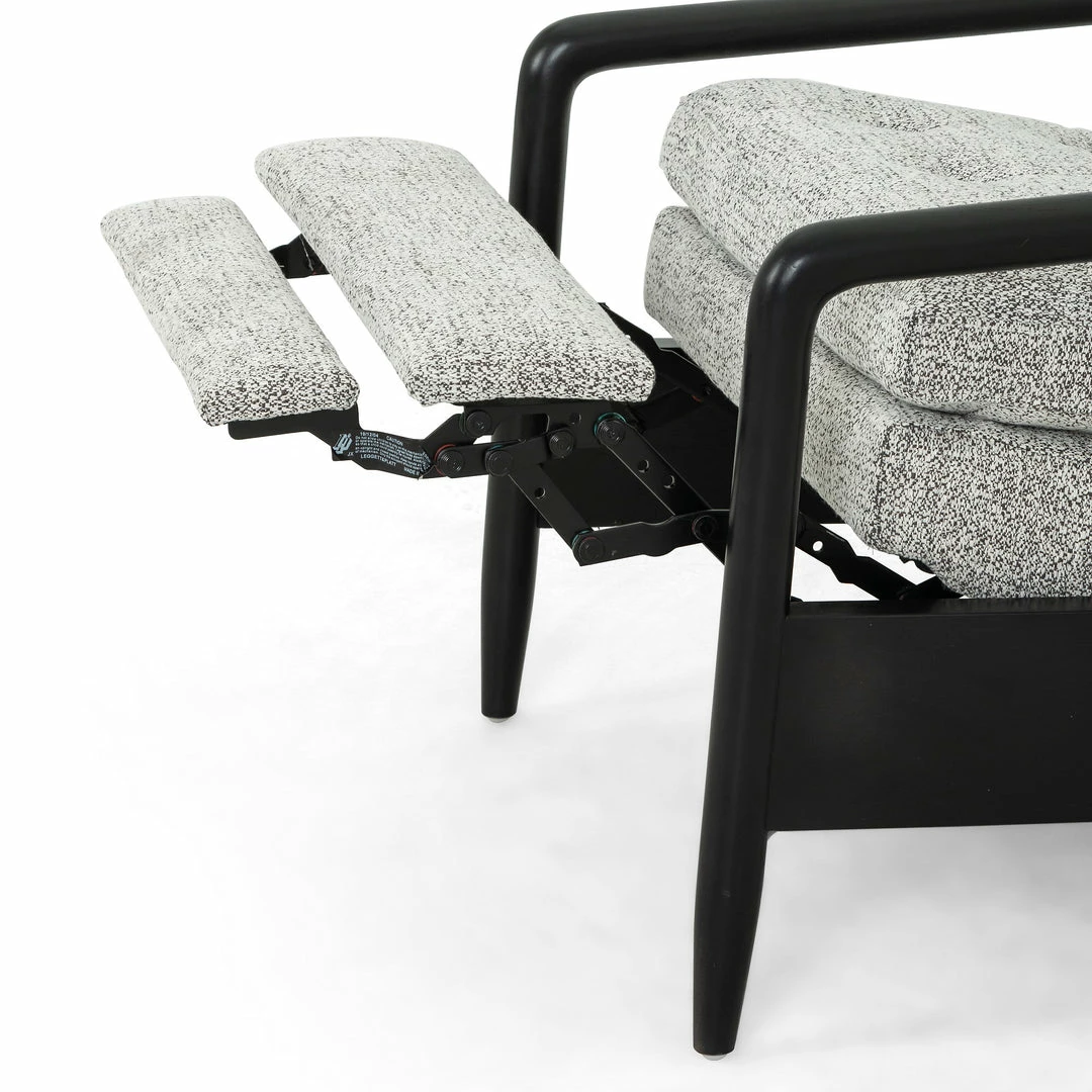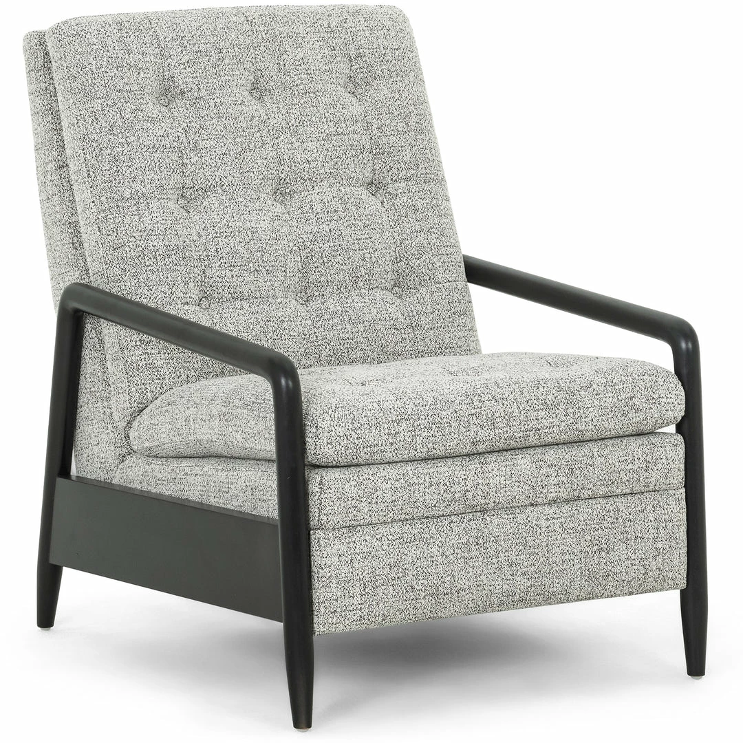 Recline in style. Button tufting and pewter-colored upholstery fuse for a textural twist on the classic recliner. Finished in a brushed ebony, sloped parawood arms add a modern finishing touch.