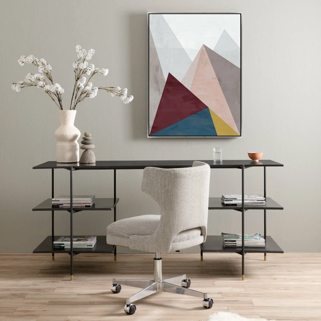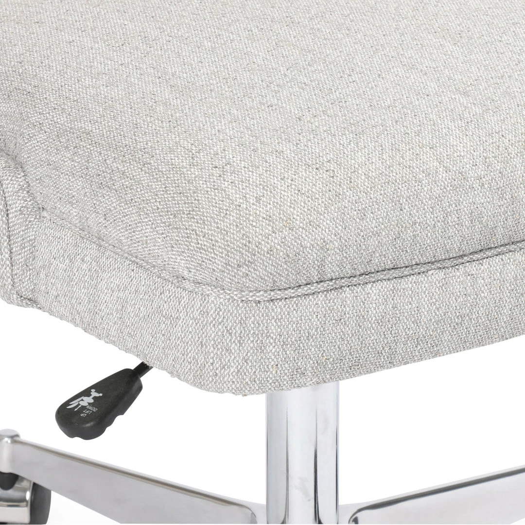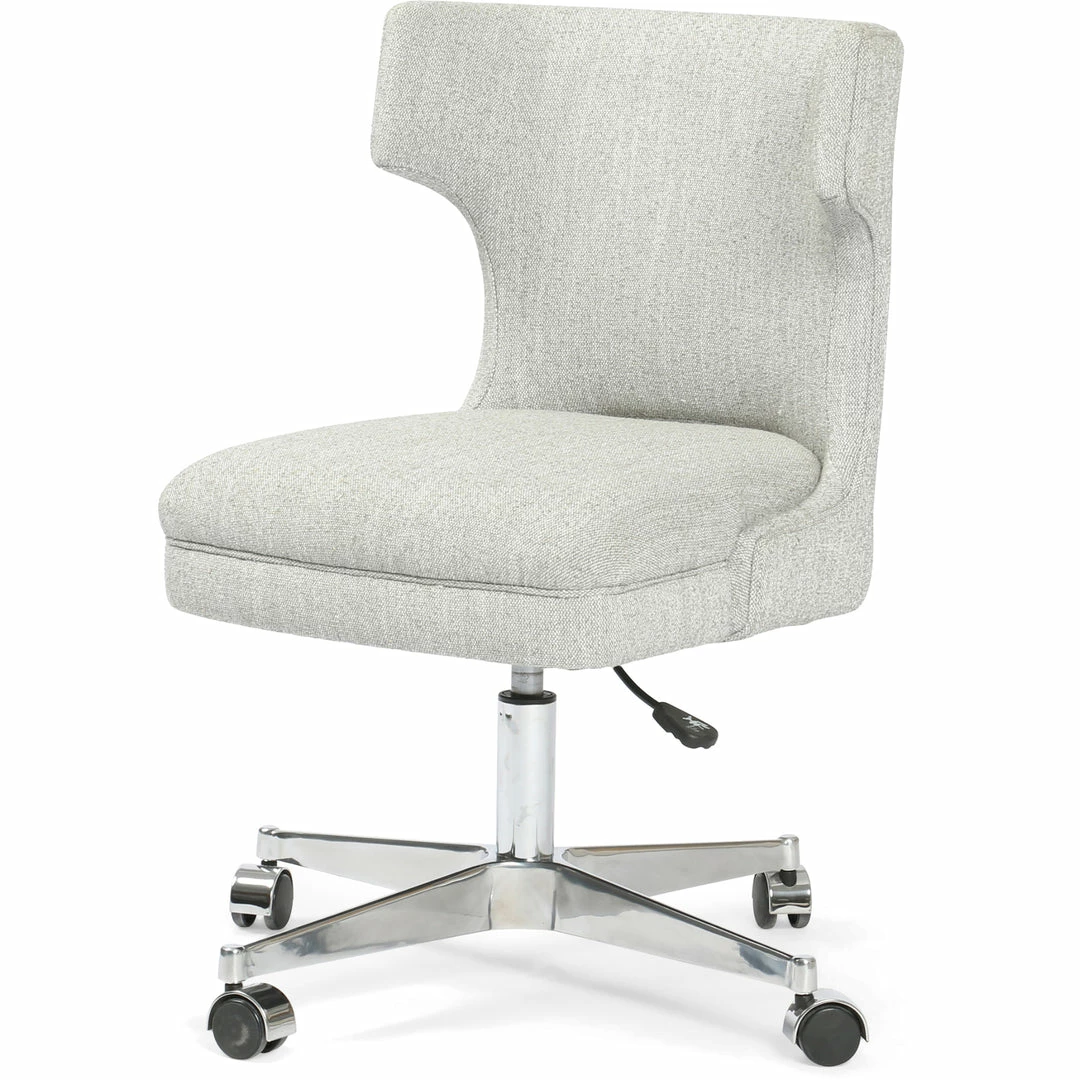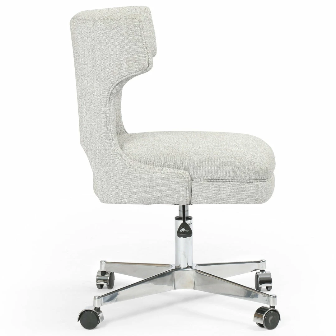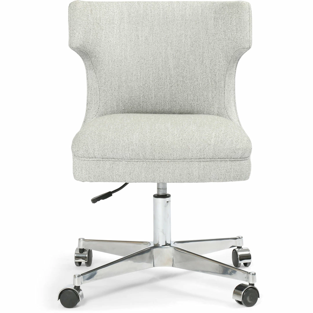 Stylish seating is essential, whatever the task at hand. Light grey canvas-like covering forms a modern wing shape, as an adjustable stainless steel swivel features wheels to meet a classic look with modern function.