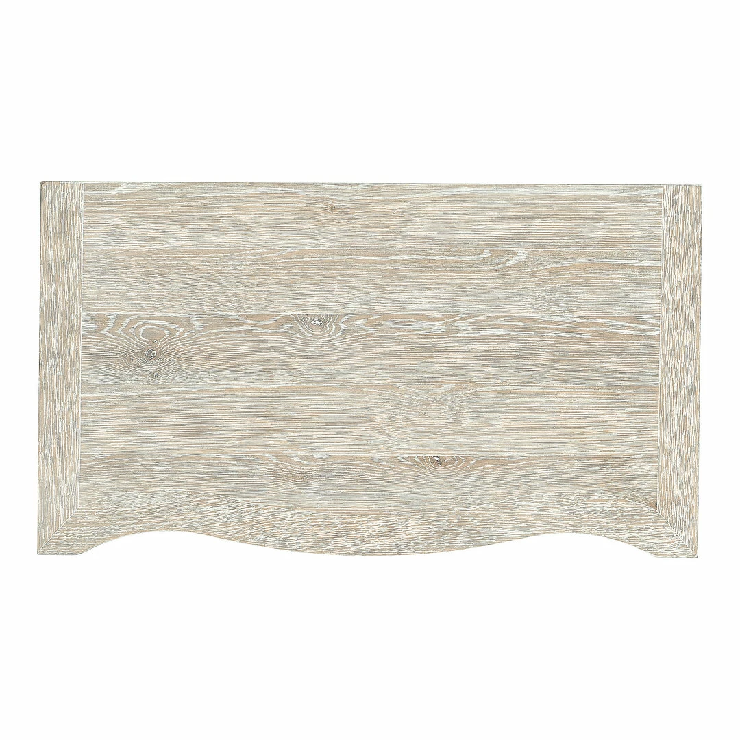 Finish: Surf: light, airy whitewashed oak. Distressing includes sandblasting and wire brushing. Light champagne ring pulls.