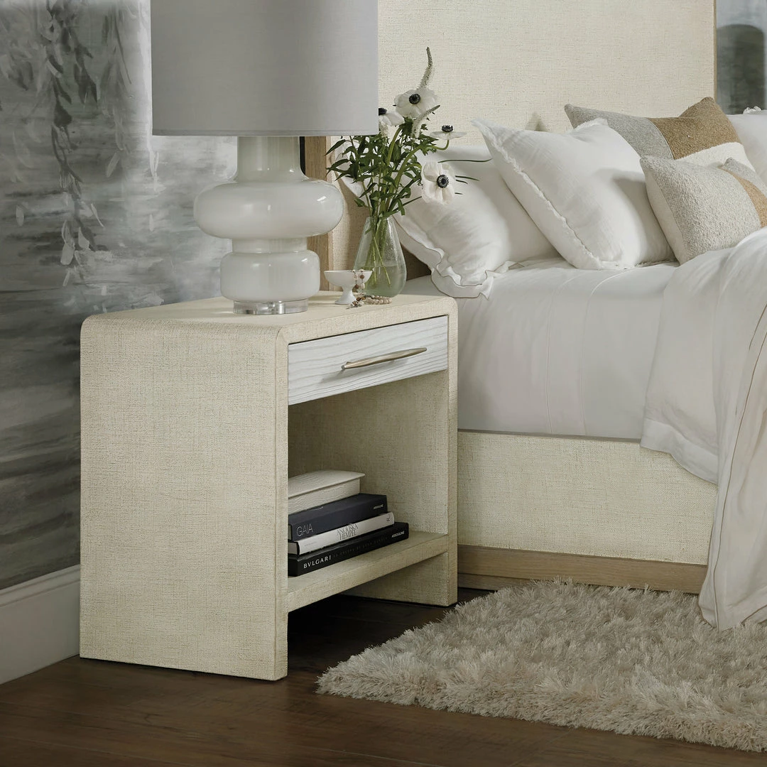 Characterized by its light and airy neutral color palette and use of mixed materials including oak, lacquered burlap, and champagne-tone hardware, the Cascade Collection’s modern beach house styling can easily find its way into a variety of interiors.