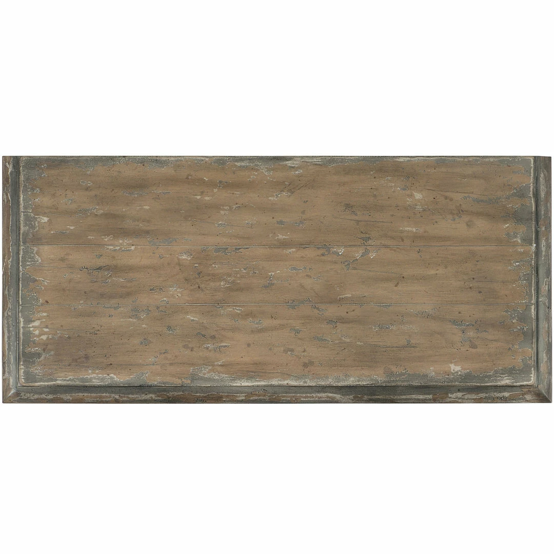 Distressing includes rasping, hand chiseling, rock, worm holes, multi-layer rub through, water marks and spatter.