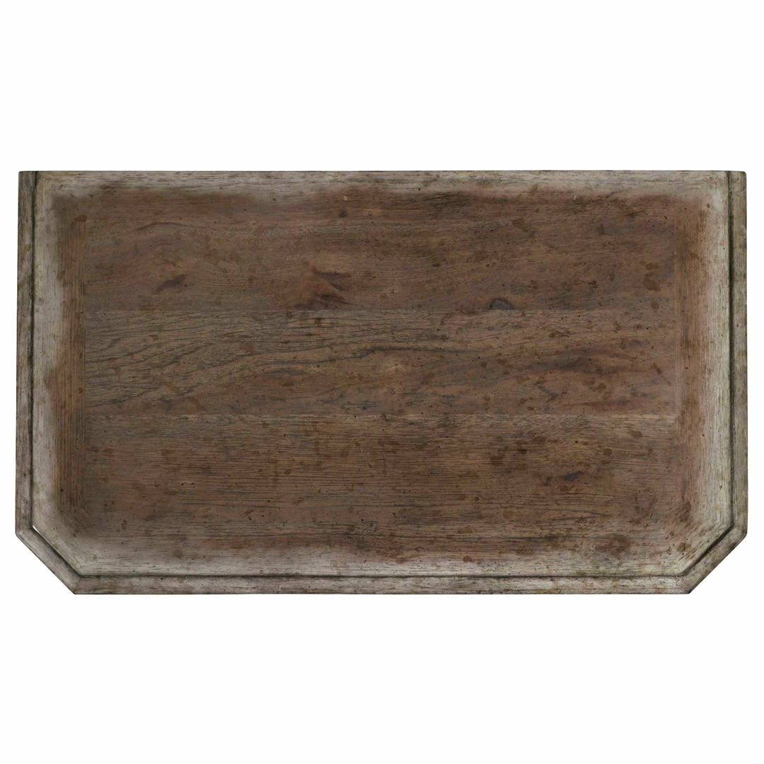 Finish: Aged grey driftwood. Distressing includes rasping and worm holes.
