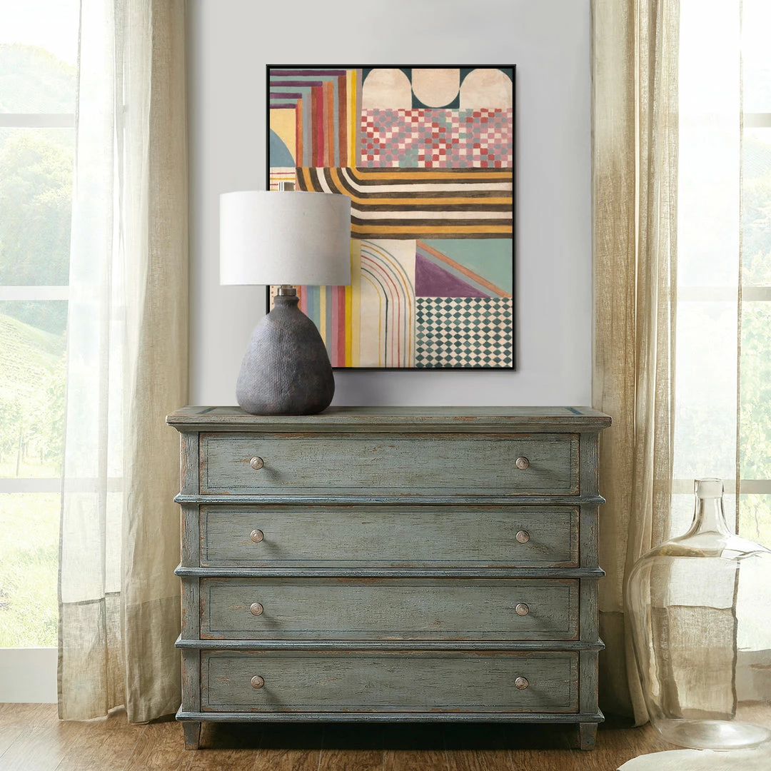 With relaxed European provincial styling, the Costiere Chest has a well-traveled aesthetic that is inspired by heirloom pieces acquired during travels in the Old World. The distressed rustic farmhouse blue finish will add a casual eclectic look and feel to any space.