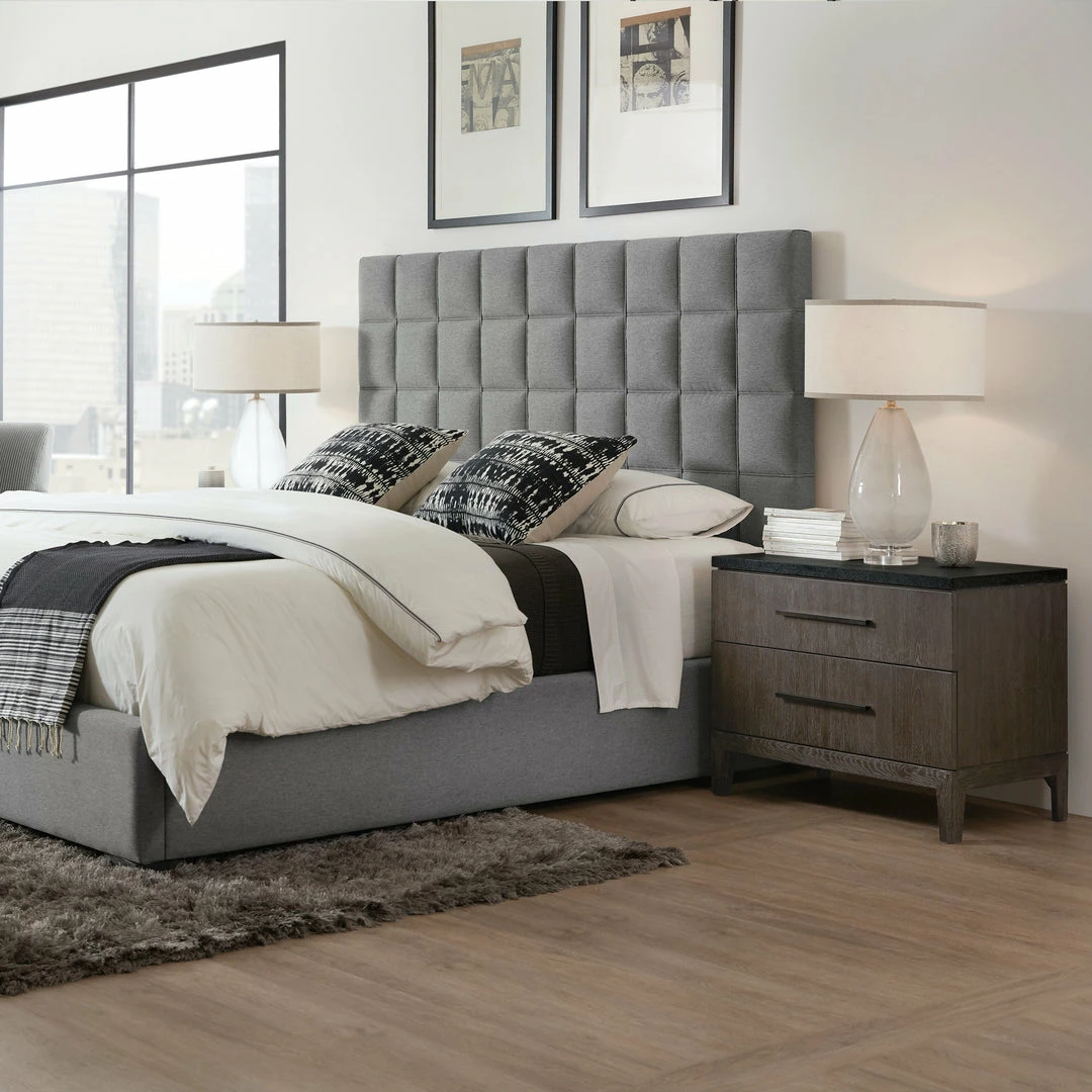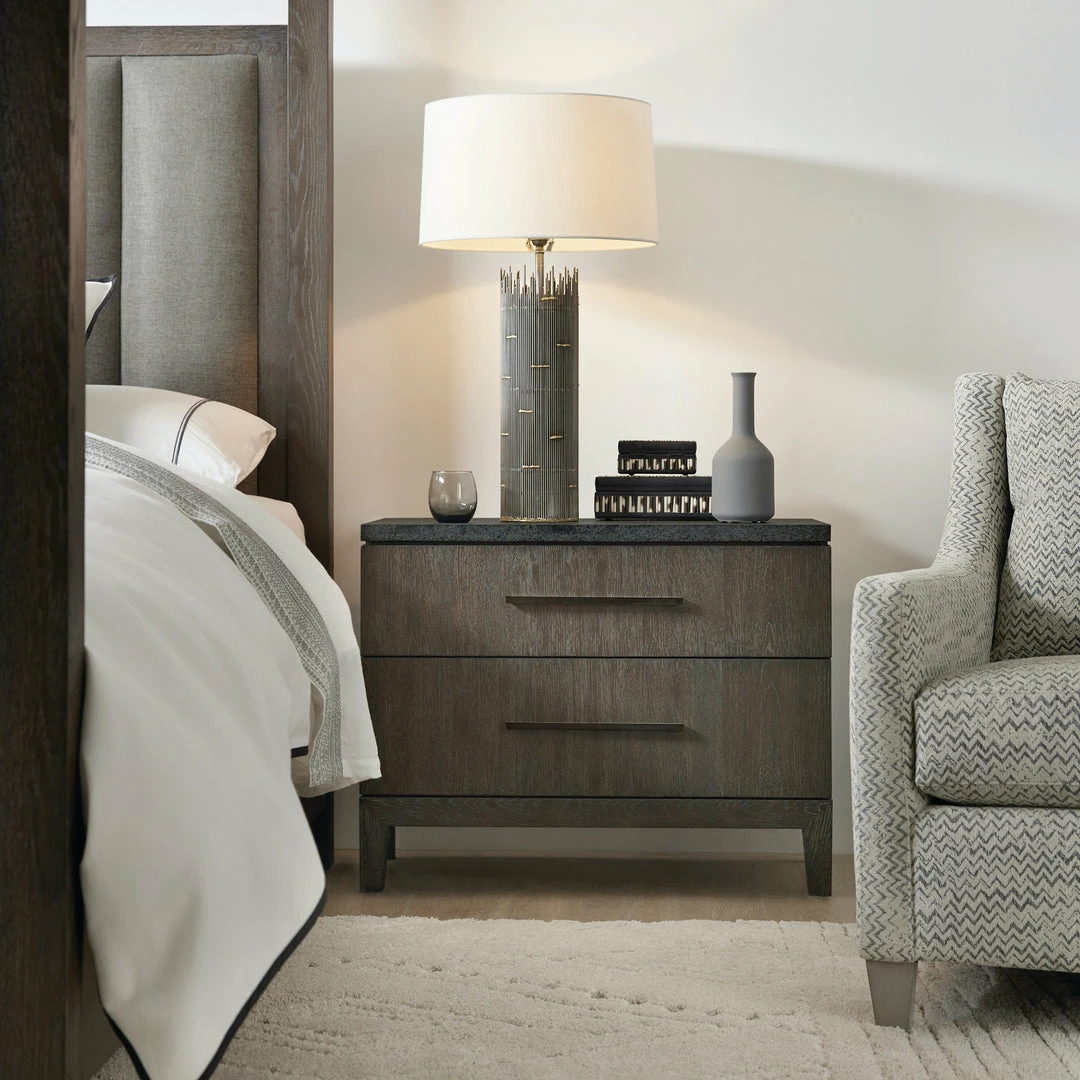 This handsome nightstand is a instant classic with a natural bluestone top and smokey oak finish. Includes a convenient hidden electrical outlet for you lamps.