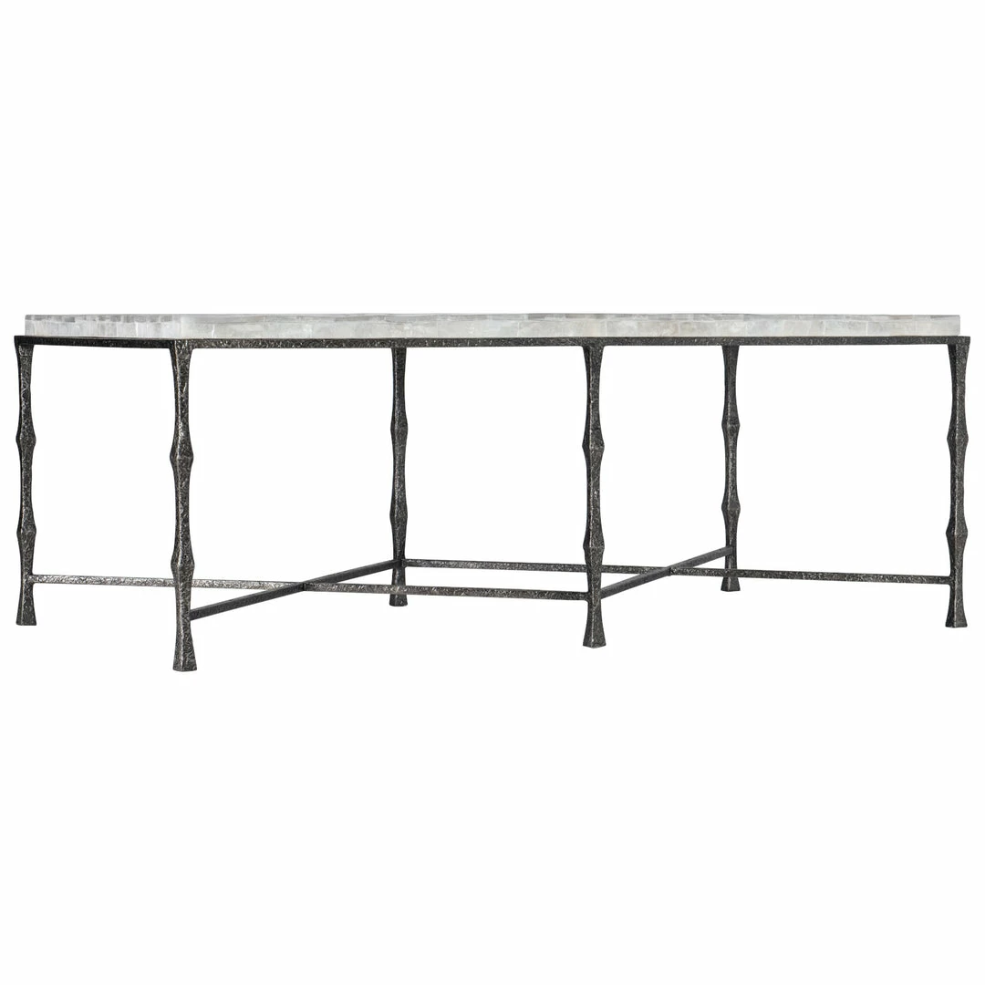 A delightful medley of natural materials and organic color tones, the versatile Surfrider Coffee Table has a Gypsum top in a multicolored blend of whites, creams and beiges and six charcoal-colored distressed metal legs and stretchers. Melding the salty, yet cozy oasis of the California coastline with a modern surf culture, Surfrider is defined by the use of natural materials including rattan, jute rope, stone, gypsum, bamboo and driftwood motifs. Designed to create relaxing spaces to escape from the pressures of modern life, it is featured in a light, natural Driftwood finish. Luxurious materials, shapes and textures combine to create a relaxed, yet sophisticated style that epitomize the lifestyle of a casual, beach-town community.