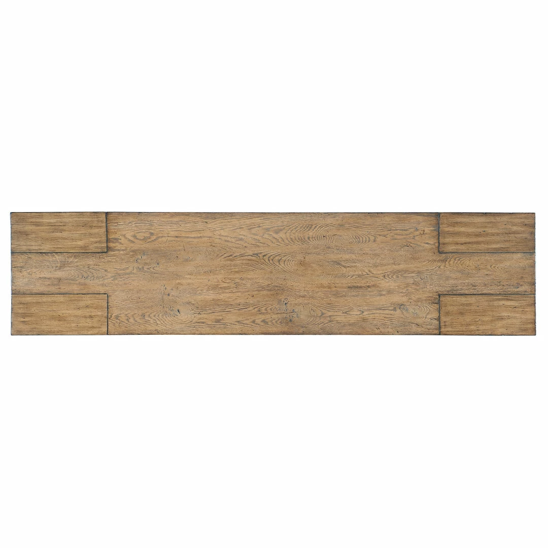 Simple and streamlined to showcase natural beauty. Mindi Solids fashion this substantial console with blocked legs and interlocking design, for an mordern look with organic vibes.