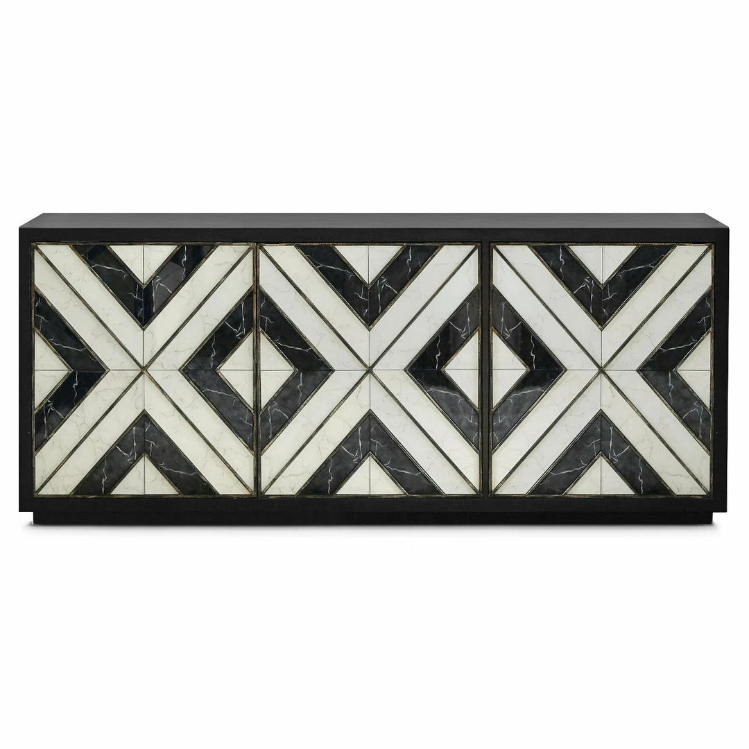Channeling jet setting socialites from the golden age of Hollywood, the Noir Entertainment Console is a dramatic and striking focal point to punch up any interior. The exquisite door fronts have reverse hand-painted glass designed to look like marble. The case is finished in Noir, a black paint with rich brown undertones, and the antique silver colored tab pulls add a luxurious touch.ย