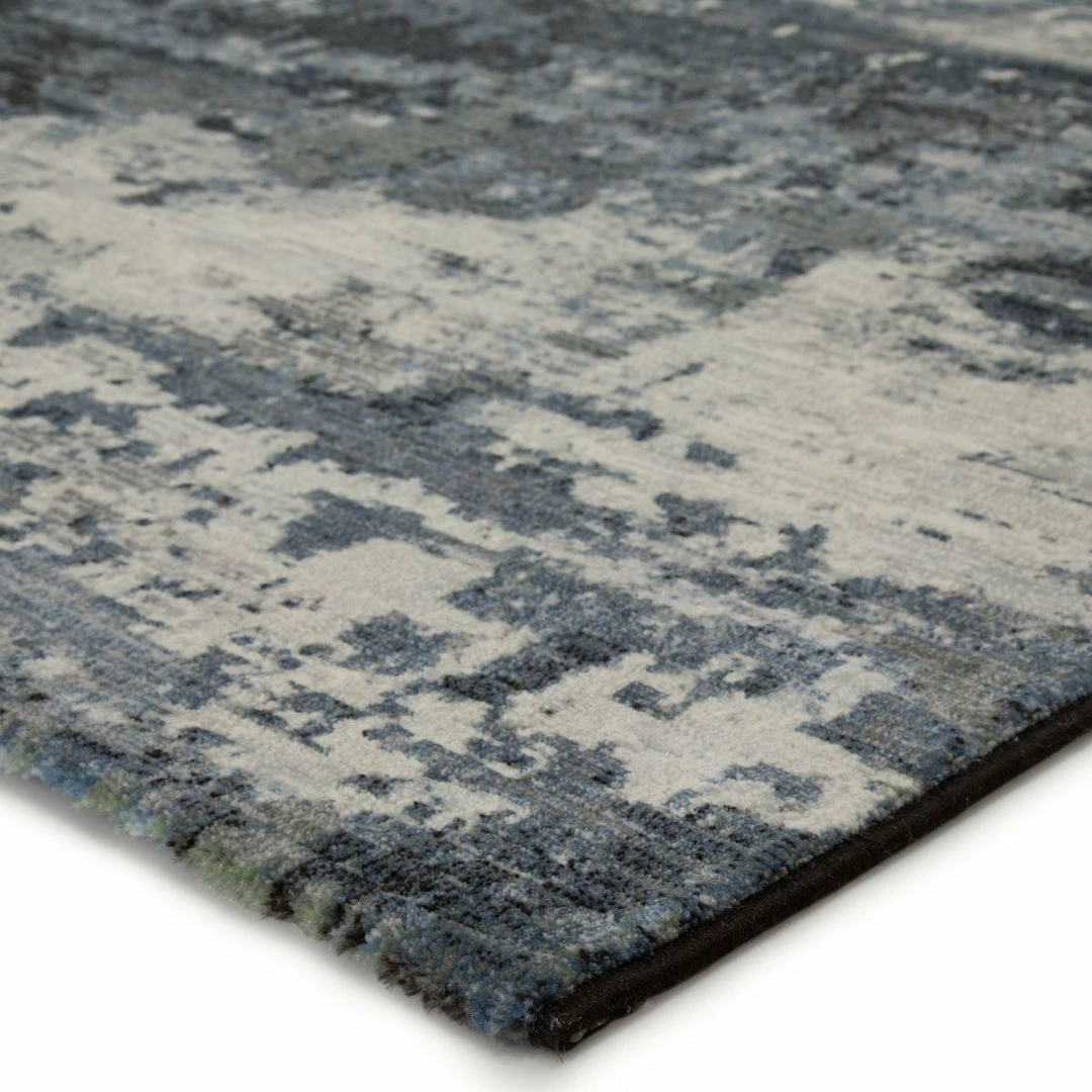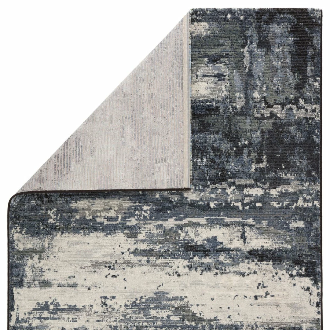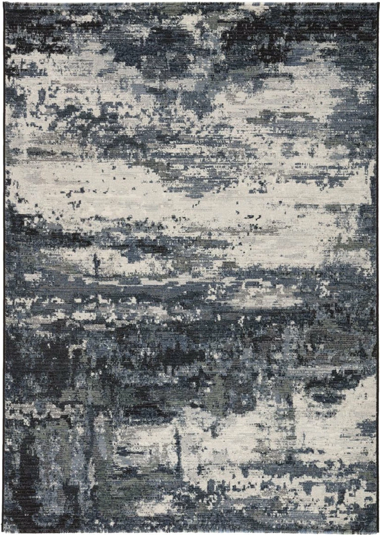 The durable and easy-care Dash collection boasts textural designs and worldly appeal. Cool blue, gray, and white tones create a mottled abstract design on the contemporary Buxton area rug. This power-loomed polyester rug is perfect for high-traffic spaces and provides cozy cushioning underfoot with high-density pile.
