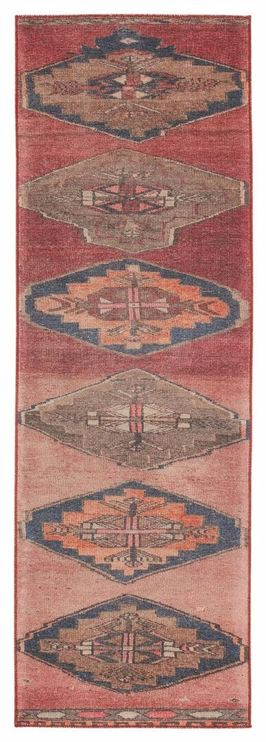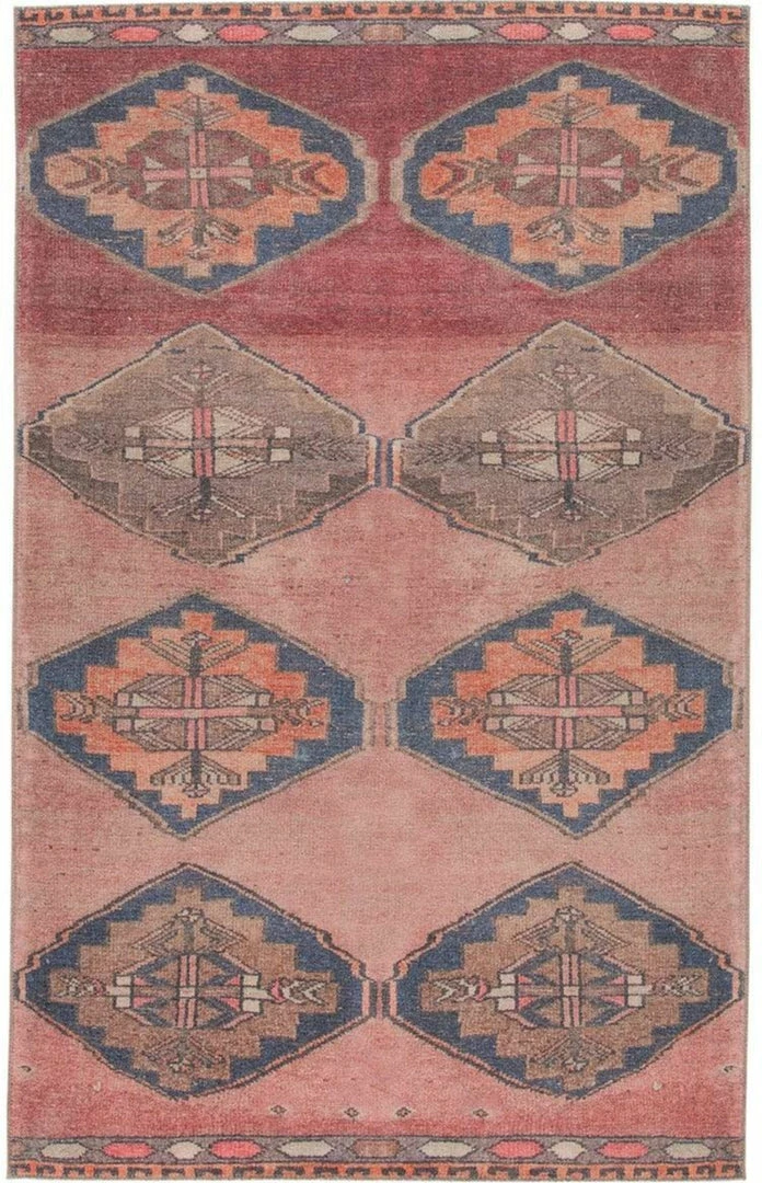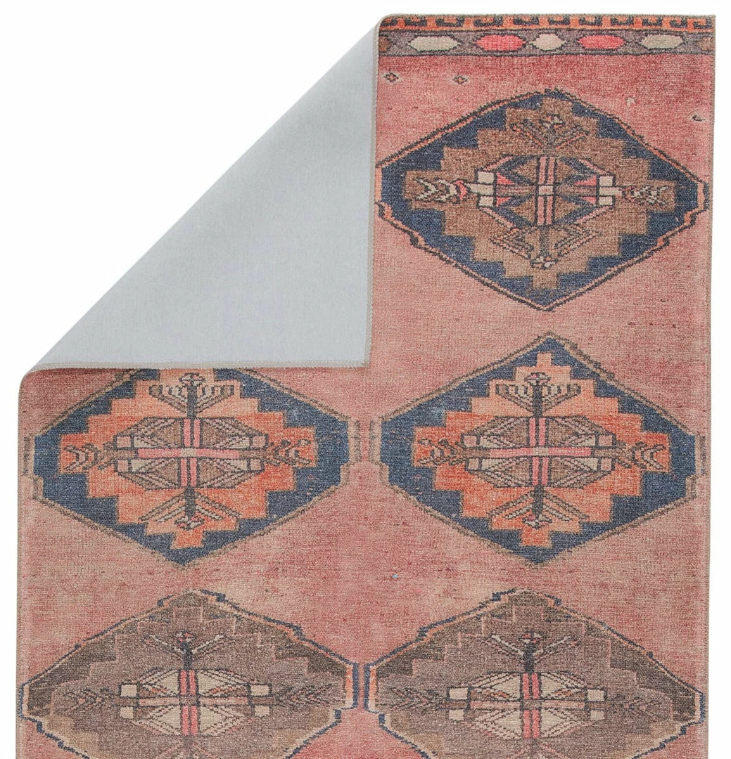 The vintage-inspired brings a playful and warm vibe to contemporary spaces. The Mirta rug features a tribal medallion design in vibrant tones of pink, orange, gray, and dark blue, perfectly distressed for a boho-chic touch. This printed style offers the timelessness of a classic Turkish motif with the versatility and affordability of a power-loomed rug.