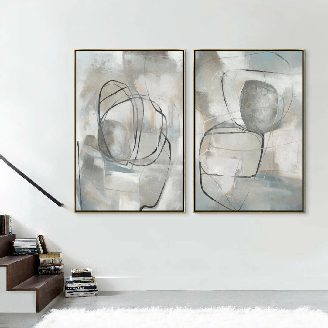 “Circular Path” abstract artwork in soft grey and neutral hues by Jacob Lincoln is printed on premium substrate comprised of a blend of non-woven fabrics. The grain of this luxurious material adds a beautiful texture and depth to the imagery. This gallery-wrapped giclee print on fiber canvas is hand stretched over 1.5″ stretcher bar with your choice of optional frame finishes.