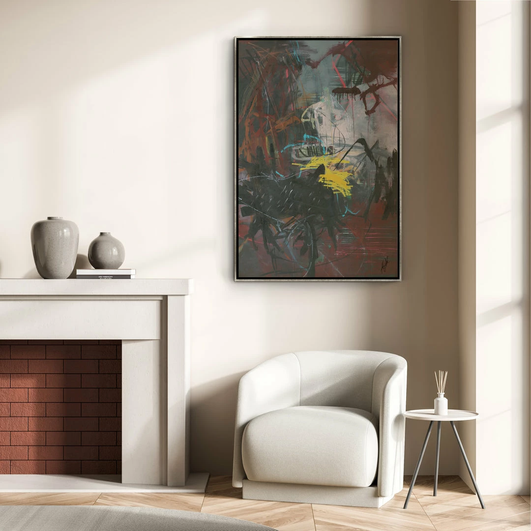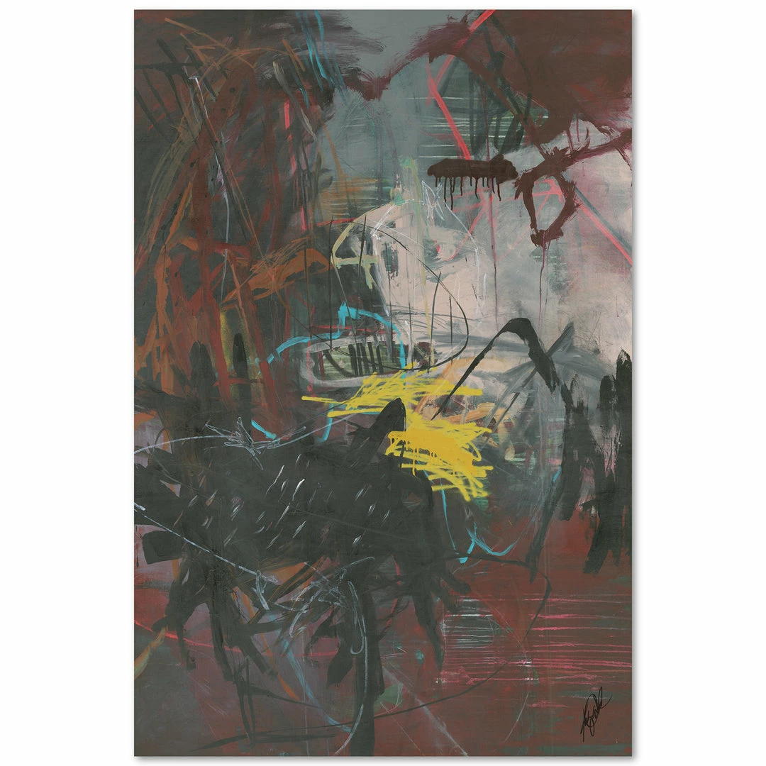 “Everything Familiar” abstract artwork by Kelly O’Neal is printed on canvas with strokes of the original image applied with an artist brush to enhance the authentic feel of the piece. This gallery-wrapped giclee is hand stretched over 1.5″ stretcher bar with your choice of optional frame finishes.