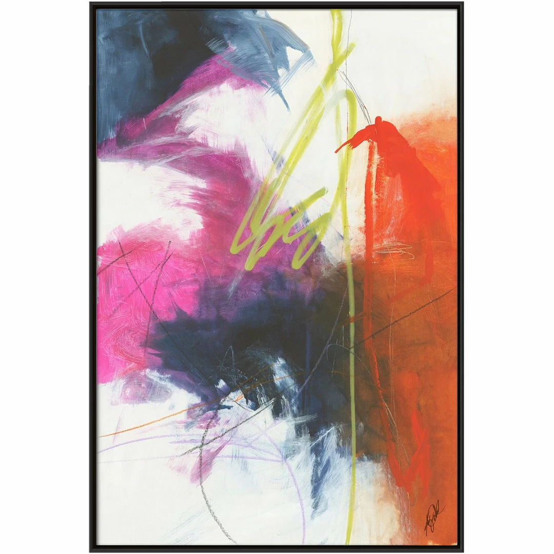 “Motives and Objectives” abstract artwork by Kelly O’Neal is printed on canvas with strokes of the original image applied with an artist brush to enhance the authentic feel of the piece. This gallery-wrapped giclee is hand stretched over 1.5″ stretcher bar with your choice of optional frame finishes.