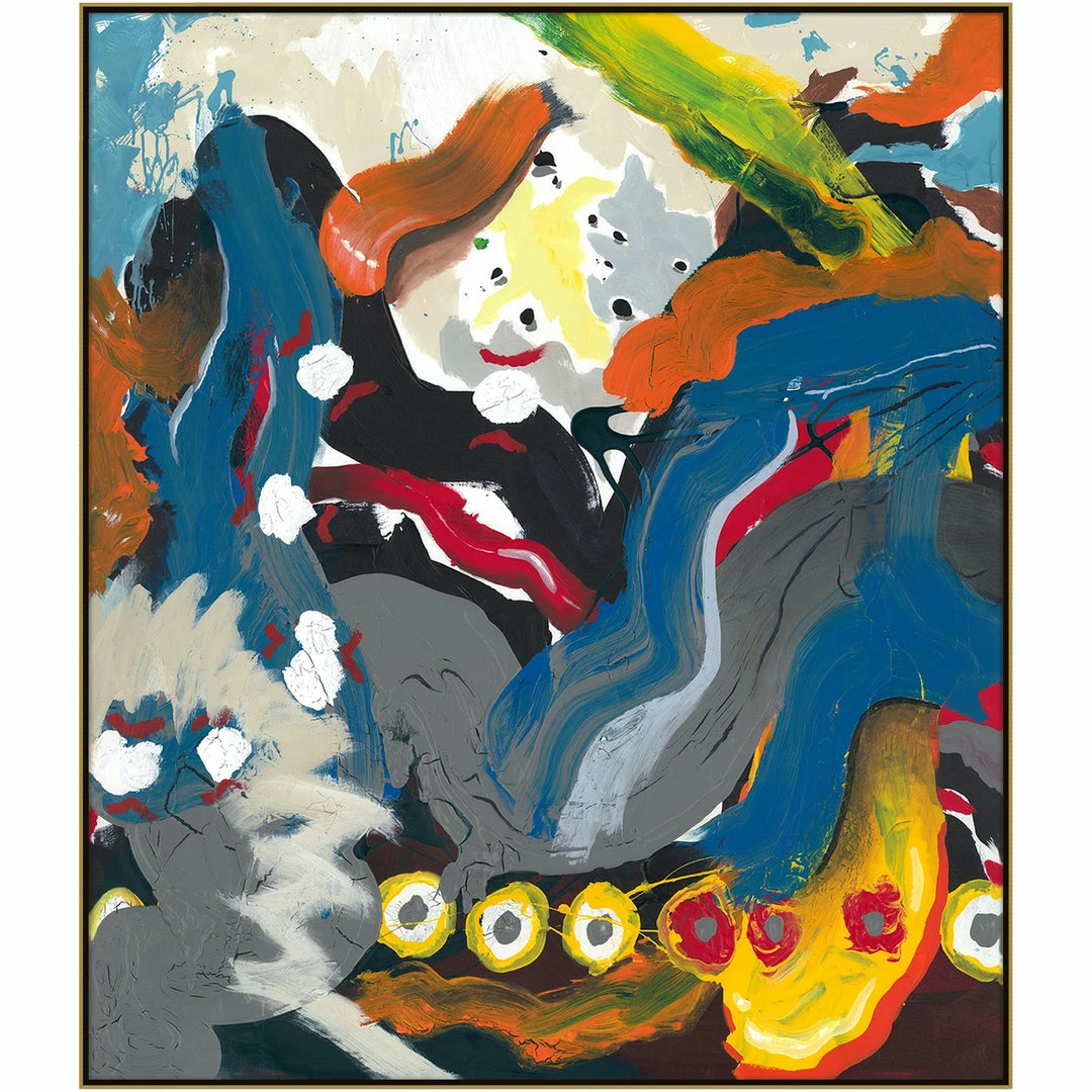 “Spillage” abstract artwork by Ryan Brown is features a primary color palette printed on canvas with strokes of the original image applied with an artist brush to enhance the authentic feel of the piece. This gallery-wrapped giclee is hand stretched over 1.5″ stretcher bar with your choice of optional frame finishes.