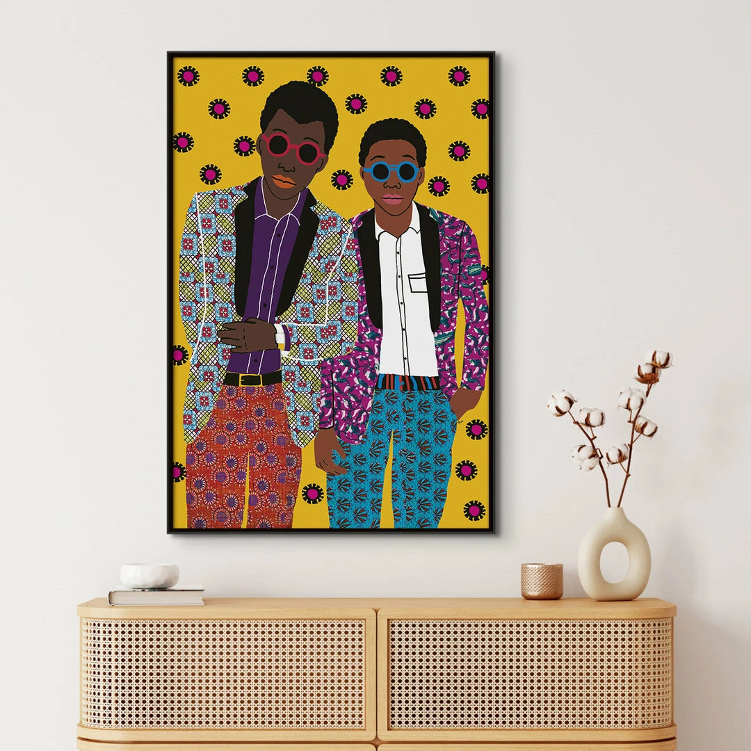 “Styling it Out” artwork by Emilie Ramon is printed on canvas with strokes of the original image applied with an artist brush to enhance the authentic feel of the piece. This gallery-wrapped giclee is hand stretched over 1.5″ stretcher bar with your choice of optional frame finishes.