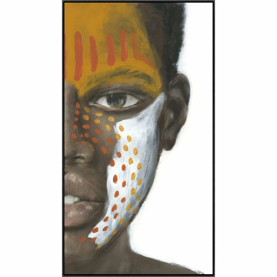 “The Real You” African portrait artwork by Bella Lane printed on natural canvas with strokes of the original image applied with an artist brush to enhance the authentic feel of the piece. This gallery-wrapped giclee is hand stretched over 1.5″ stretcher bar with your choice of optional frame finishes.