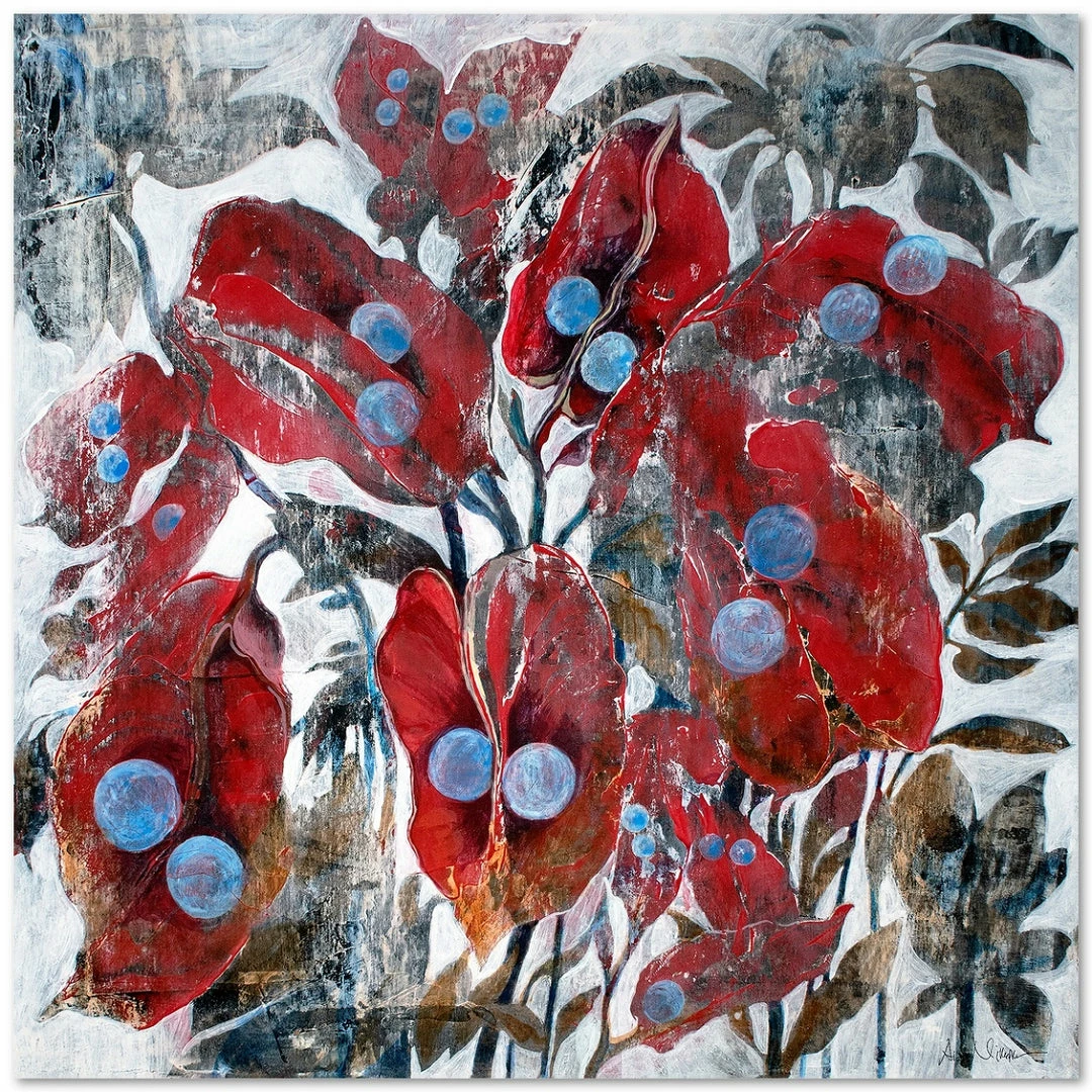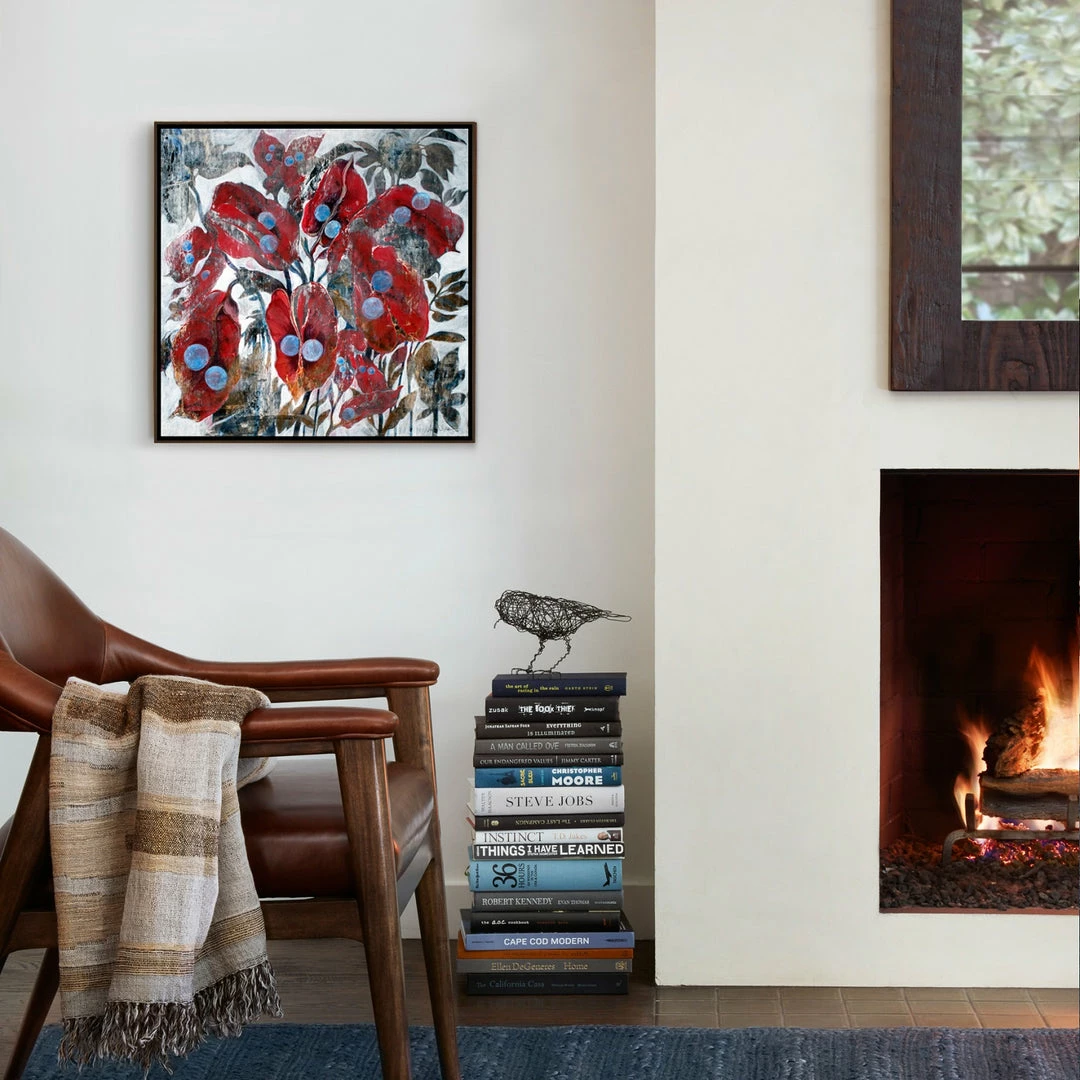 “Until Spring” bohemian floral artwork by Alexander Nikanpour is printed on canvas with strokes of the original image applied with an artist brush to enhance the authentic feel of the piece. This gallery-wrapped giclee is hand stretched over 1.5″ stretcher bar with your choice of optional frame finishes.