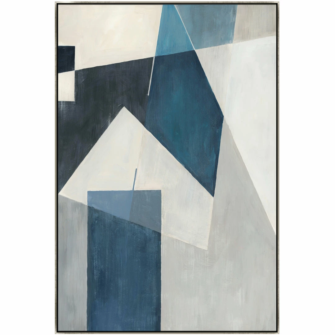 “Congruency” abstract artwork in blue and grey by Richard Ryder is printed on canvas with strokes of texture that follow the image to enhance the authentic feel of the piece. This gallery-wrapped giclee is hand stretched over 1.5″ stretcher bar with your choice of optional frame finishes.
