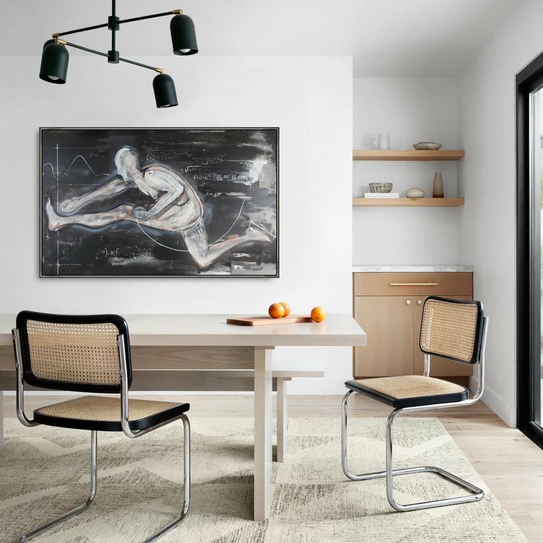 “Conquering Hurdles” by JP Kilkenny is a giclee print on canvas with an encaustic finish artistically applied technique incorporating the use of fine art papers, a unique blend of wax, and a heating method that renders a versatile and unique piece of artwork. This gallery-wrapped giclee is hand stretched over 1.5″ stretcher bar and framed with a rustic black modern float with silver.