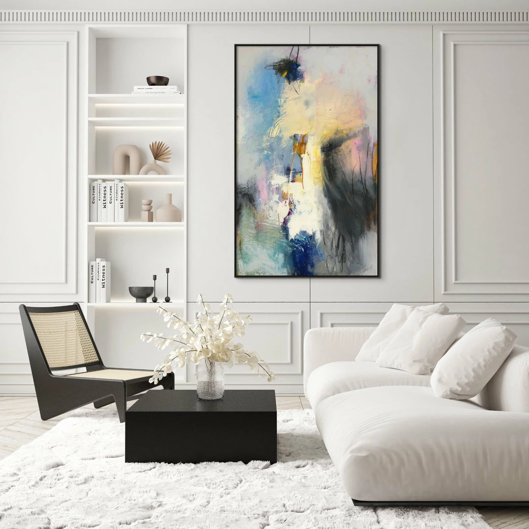 “First Light V” abstract artwork by Susie Zolghadri is printed on canvas with strokes of the original image applied with an artist brush to enhance the authentic feel of the piece. This gallery-wrapped giclee is hand stretched over 1.5″ stretcher bar with your choice of optional frame finishes.
