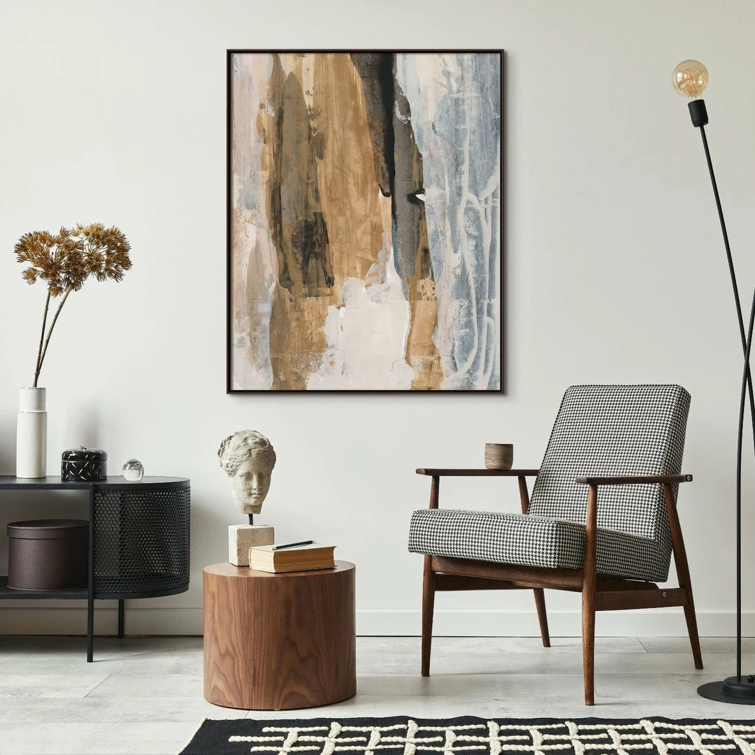 “Go to Sleep” abstract artwork by Van Garret in neutral brown-grey hues is printed on canvas with a waxy gel finish applied vertically to the image to enhance the authentic feel of the piece. This gallery-wrapped giclee is hand stretched over 1.5″ stretcher bar with your choice of optional frame finishes.