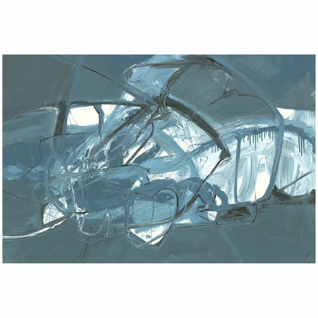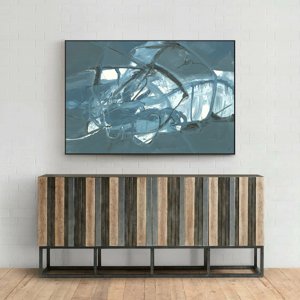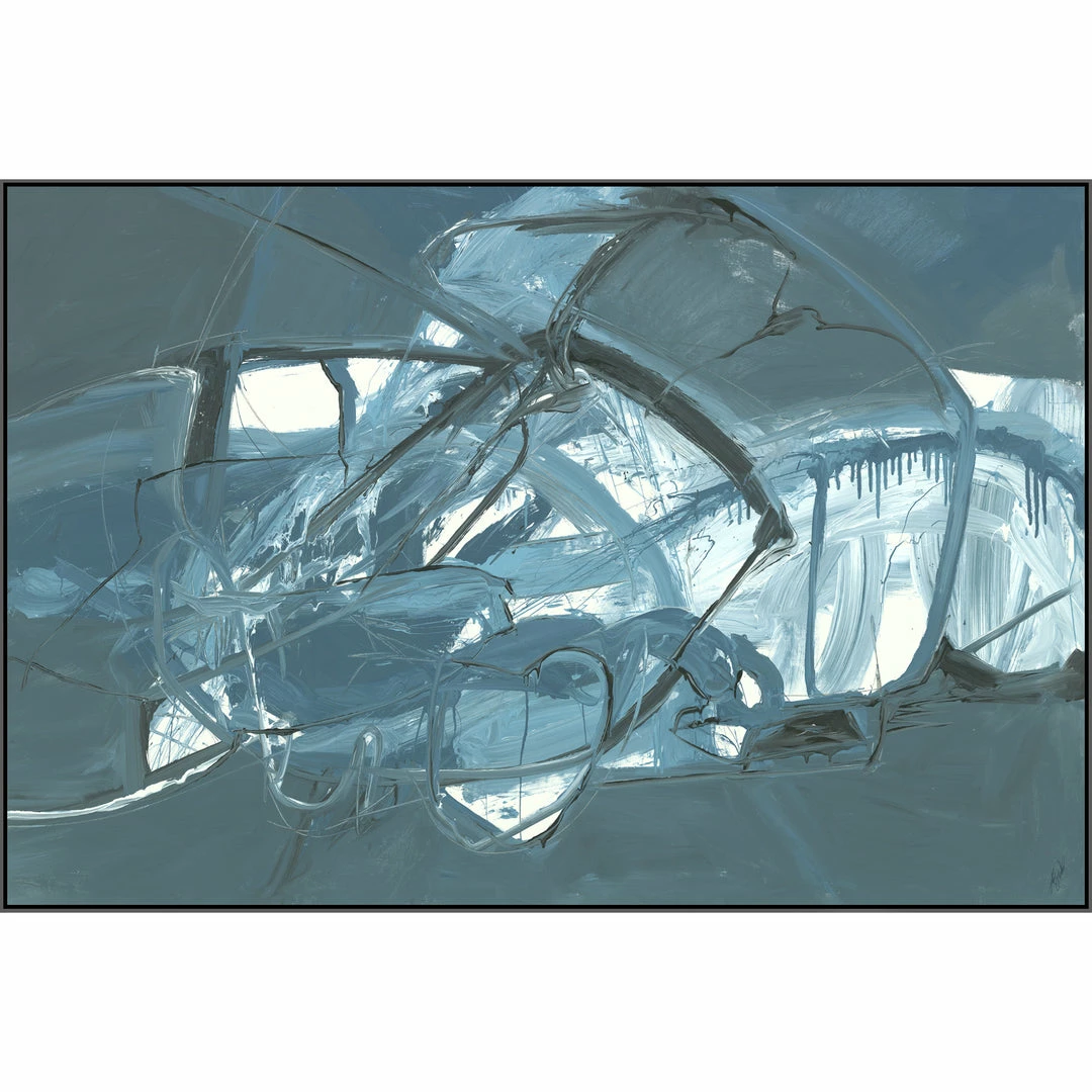 “Inevitable Changes” steel blue abstract artwork by Kelly O’Neal is printed on canvas with strokes of the original image applied with an artist brush to enhance the authentic feel of the piece. This gallery-wrapped giclee is hand stretched over 1.5″ stretcher bar with your choice of optional frame finishes.