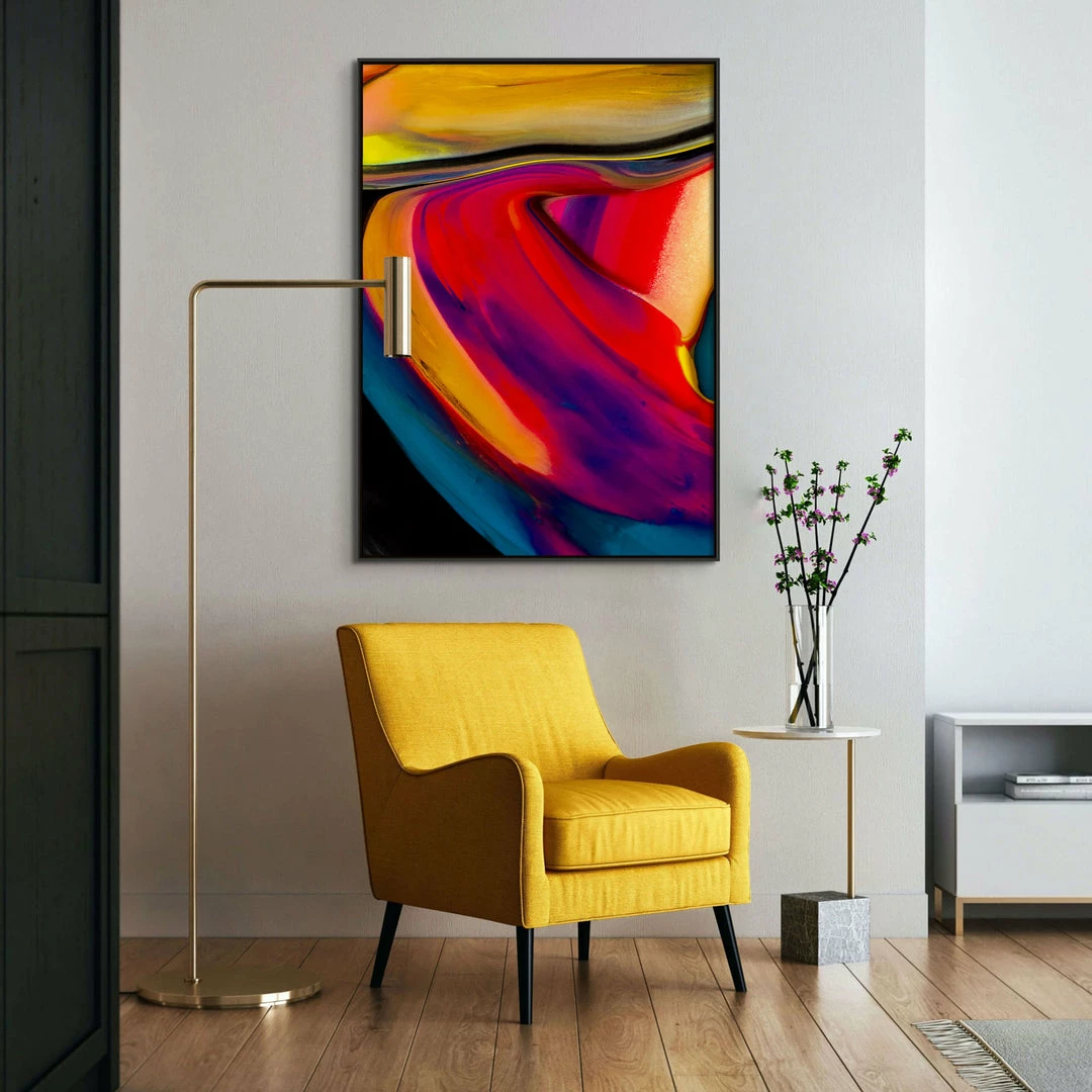 “Movement in Red 9114″ abstract artwork by Addison Jones is finished with an epoxy resin multi-step process rendering a durable and protective polish glass finish. This gallery-wrapped giclee is hand stretched over 1.5” stretcher bar with your choice of optional frame finishes.
