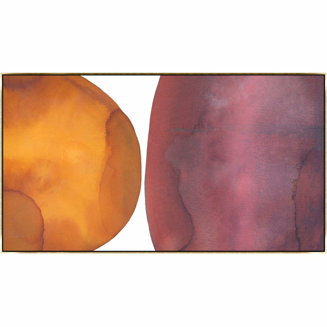 “Violet and Coral Shapes” abstract artwork by Dawn Sweitzer is printed on canvas with strokes of texture that follow the image to enhance the authentic feel of the piece. This gallery-wrapped giclee is hand stretched over 1.5″ stretcher bar with your choice of optional frame finishes.