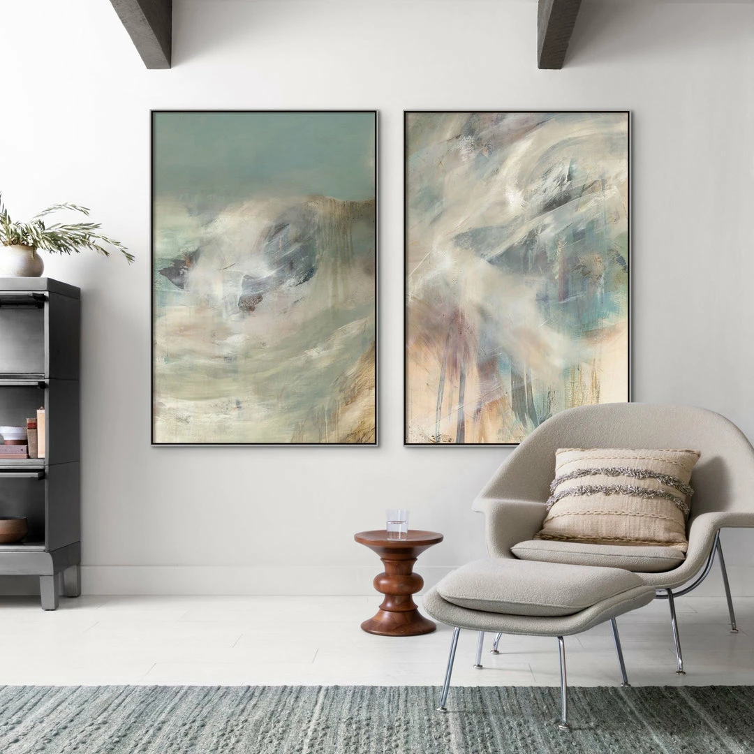 “Wingspan II” abstract artwork by Sarah Stockstill is printed on canvas with strokes of texture that follow the image to enhance the authentic feel of the piece. This gallery-wrapped giclee is hand stretched over 1.5″ stretcher bar with your choice of optional frame finishes.