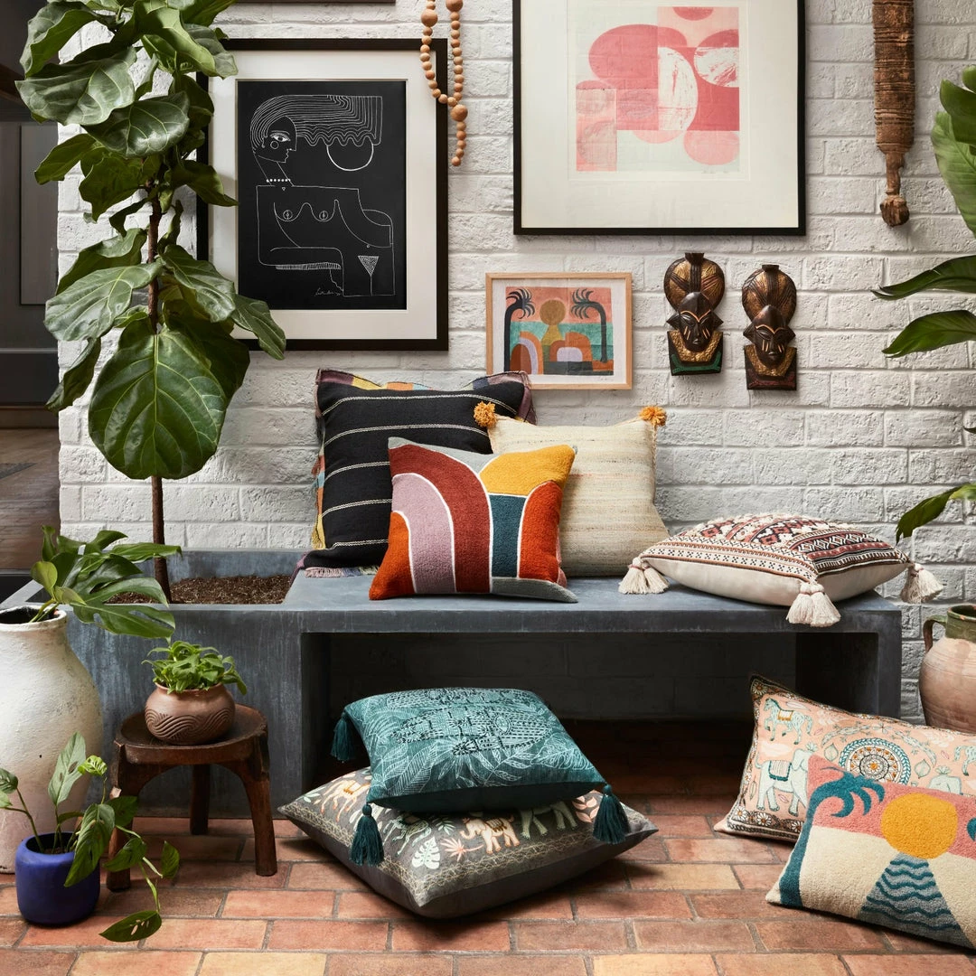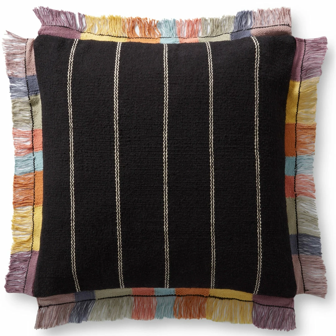 Best Sale โค๏ธ LOLOI CARMEN BLACK MULTI FRINGE EDGE THROW PILLOW ๐