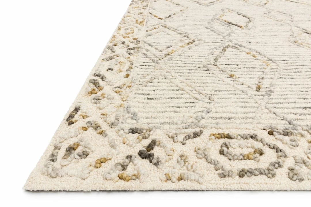 Inspired by abstract, tribal and geometric freehand art. The Leela Collection is hooked of 100% wool pile hand tufted dimensional designs that create the illusion of visual movement while adding texture.