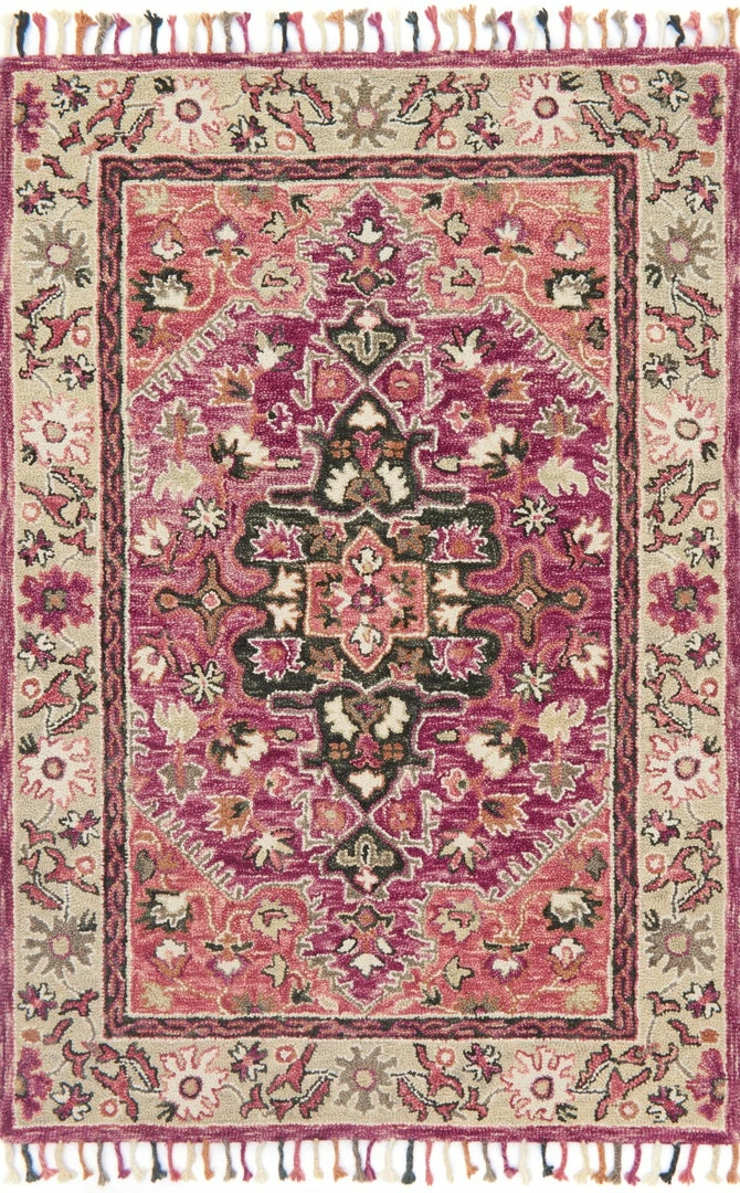 Hooked by skilled artisans of 100% wool, this collection boasts bold colors with impossible-to-miss patterns and tassel detail for a decidedly statement-making series of rugs.