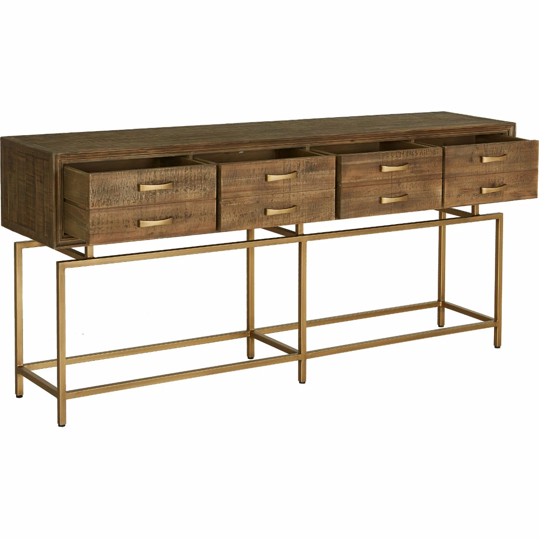Featuring drawers that seem to float above the gorgeous brass frame, this console table is a real show stopper!