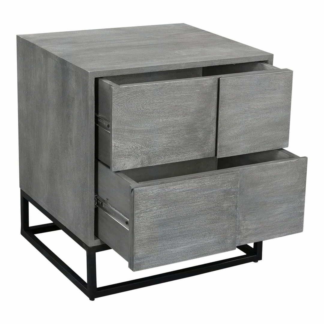 An ode to cubism, the Devon Nightstand’s geometric finish and contemporary design make it a crowd favorite. A grey stain on solid acacia elevates the woods natural grain and knots, while the powder coated iron frame gives this nightstand a modern feel.