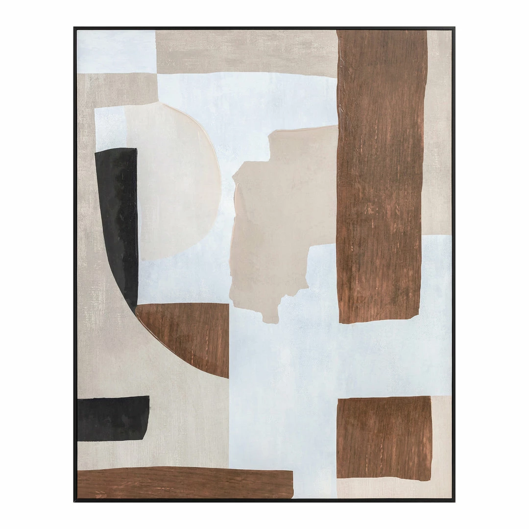 A thoroughly modern design incorporating timeless ancient forms, this abstract ink print on canvas is presented in earthy neutrals and finished in a slender black frame with hanging hardware included.