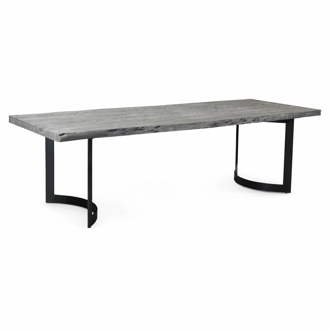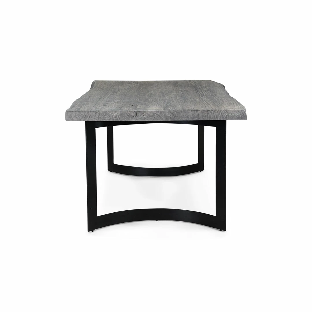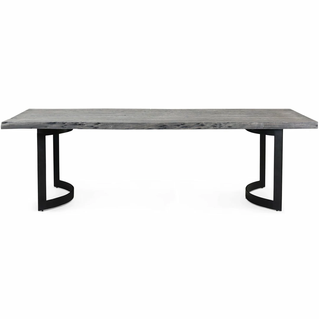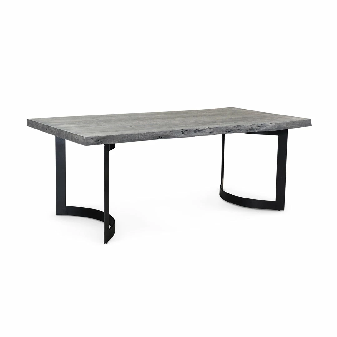 The Bent collection puts nature’s craft front and center. Made of beautiful solid acacia wood, rustic live edge detailing shows off the unique knots and whorls of the wood. This dining table’s expansive surface beautifully showcases the wood’s personality, and is offset by a sturdy industrial metal base.