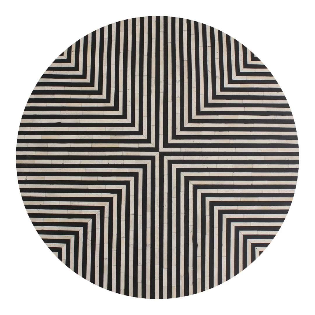 A sleek and unique centerpiece for a living room, this coffee table features intricately patterned camel bone veneer. The Chameau coffee table has a low to the ground profile and circular design. The brass legs and resin coating adds bold flare to its contemporary design.