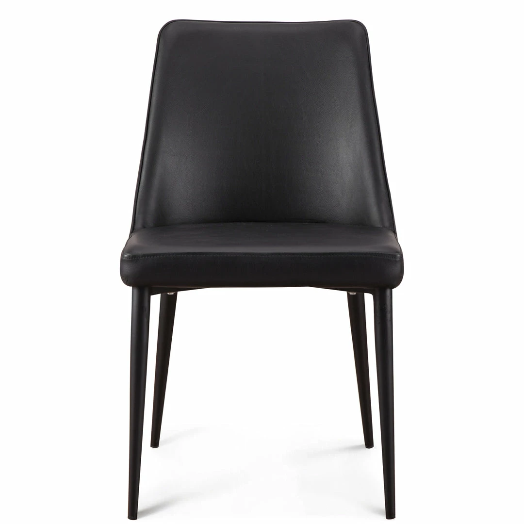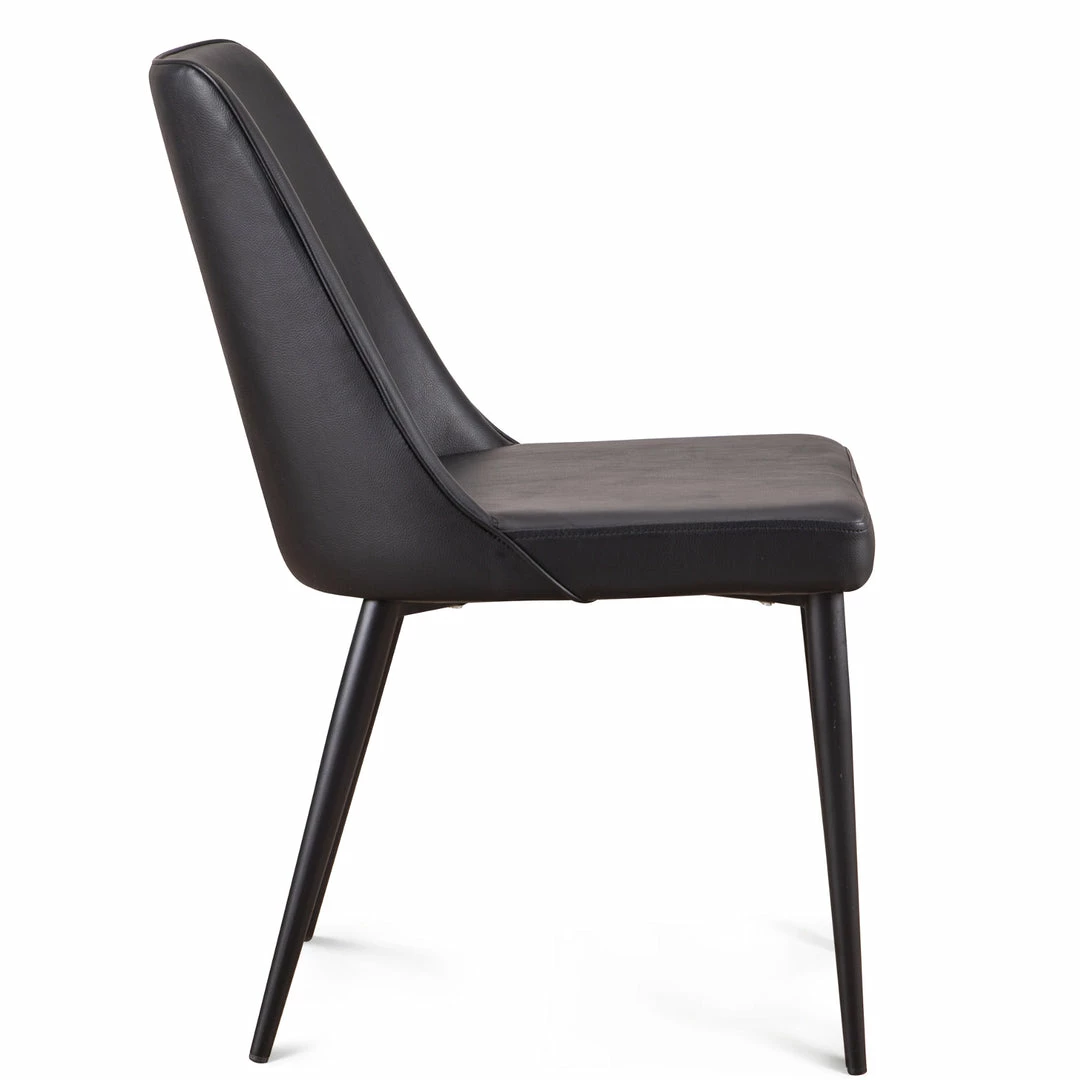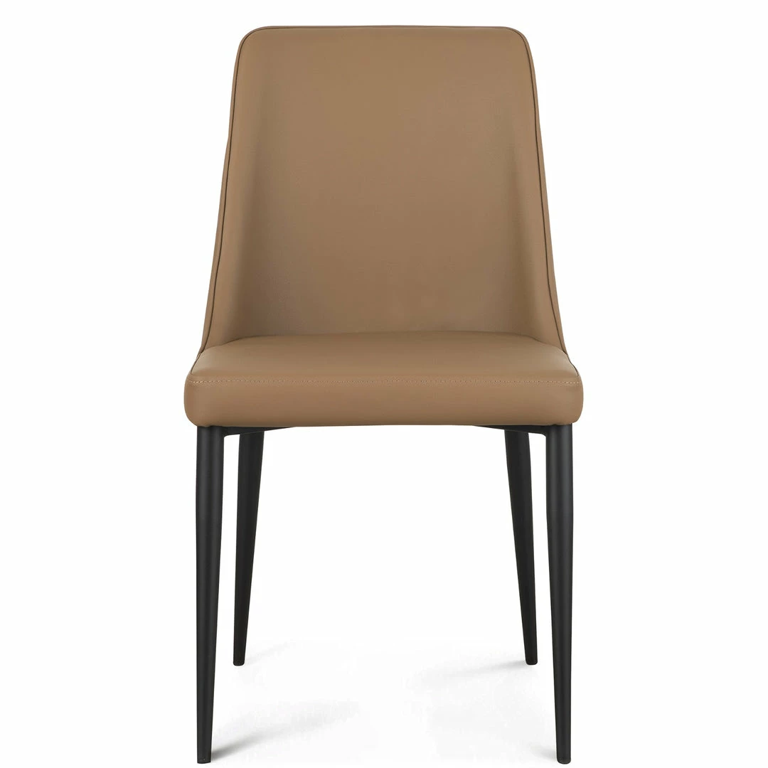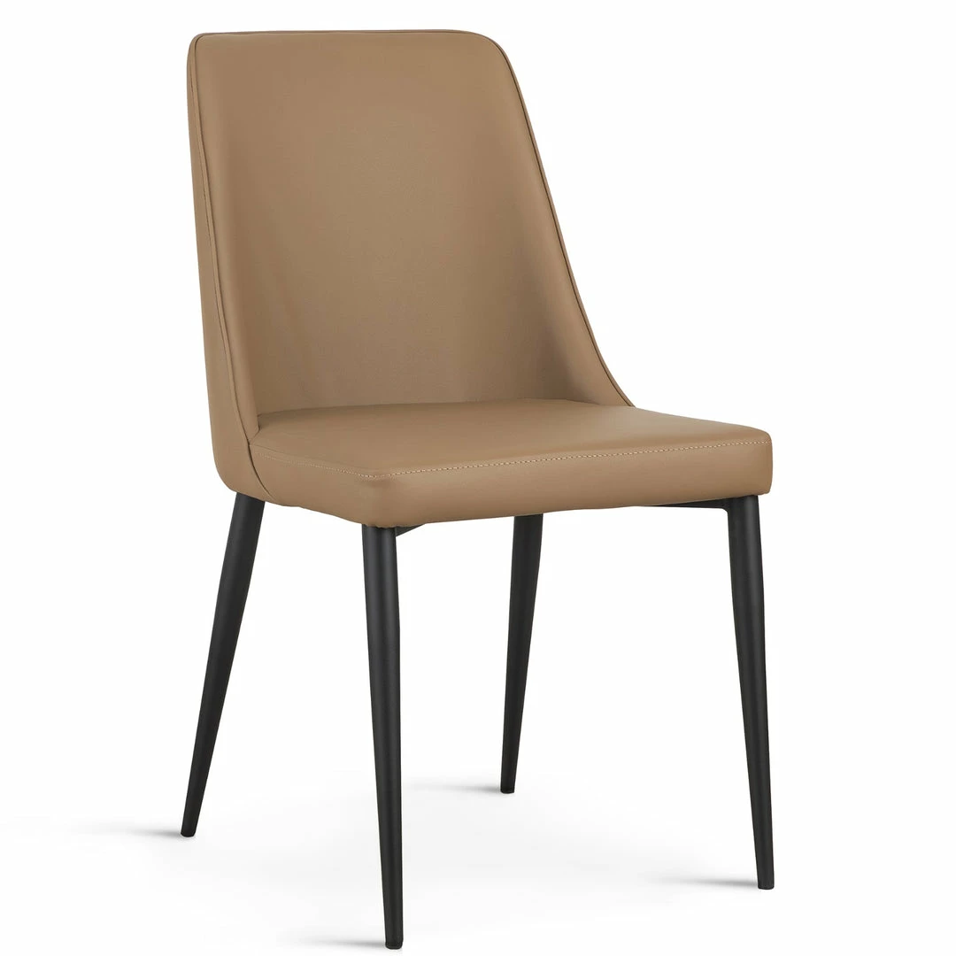 Shapely and sleek, with a scooped back and tapered legs, James vegan leather upholstery and simple design brings contemporary cool to the dining room